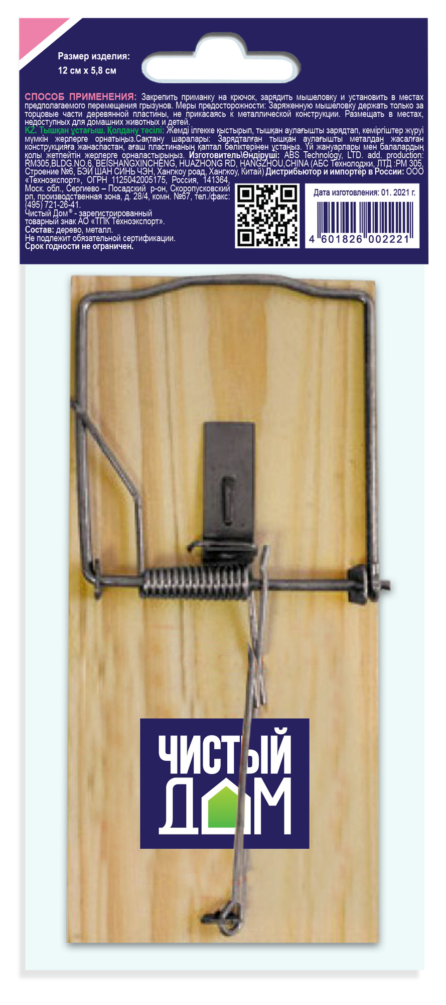 Мышеловка Чистый дом, 12 x 5,8 см