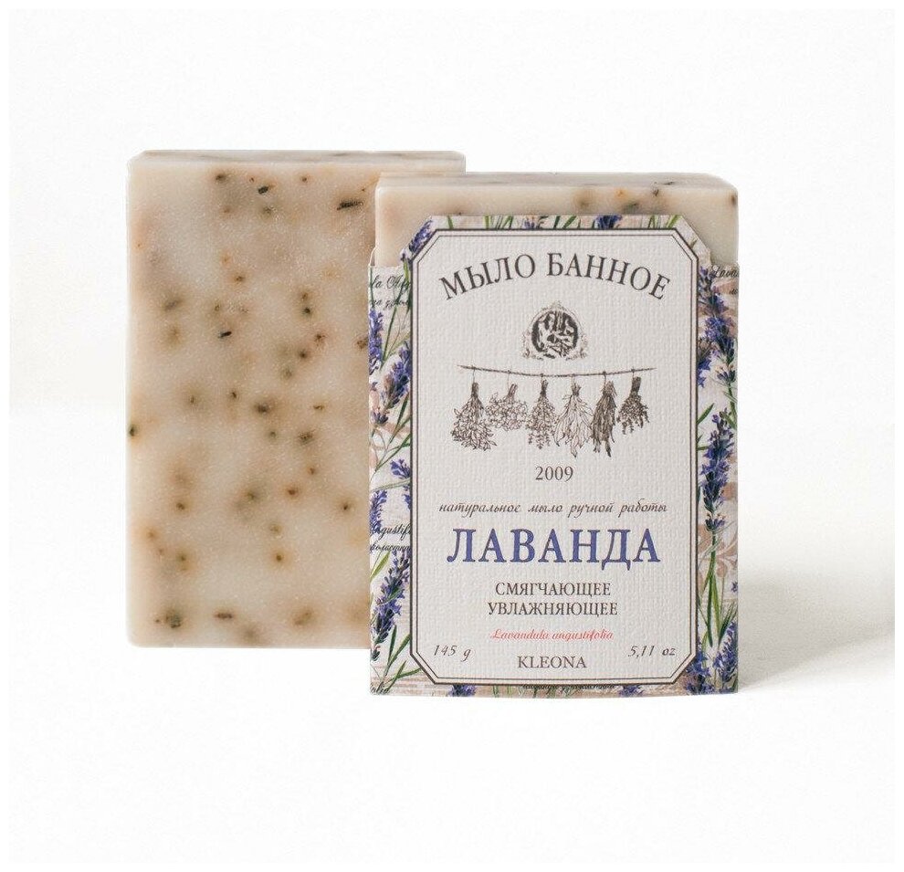 Kleona Натуральное мыло ручной работы банное "Лаванда" смягчающее и увлажняющее, 145 г