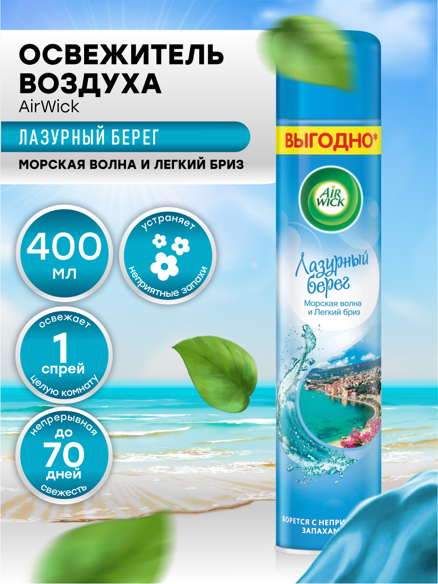 СохранитьОсвежитель воздуха AirWick Лазурный берег Морская волна и Легкий бриз 400 мл. интересное: