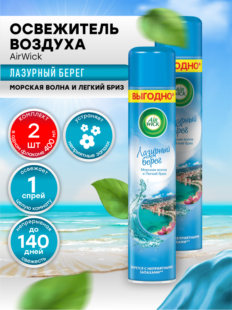 Купить Освежитель воздуха AirWick Лазурный берег Морская волна и Легкий бриз 400 мл. х 2 шт.