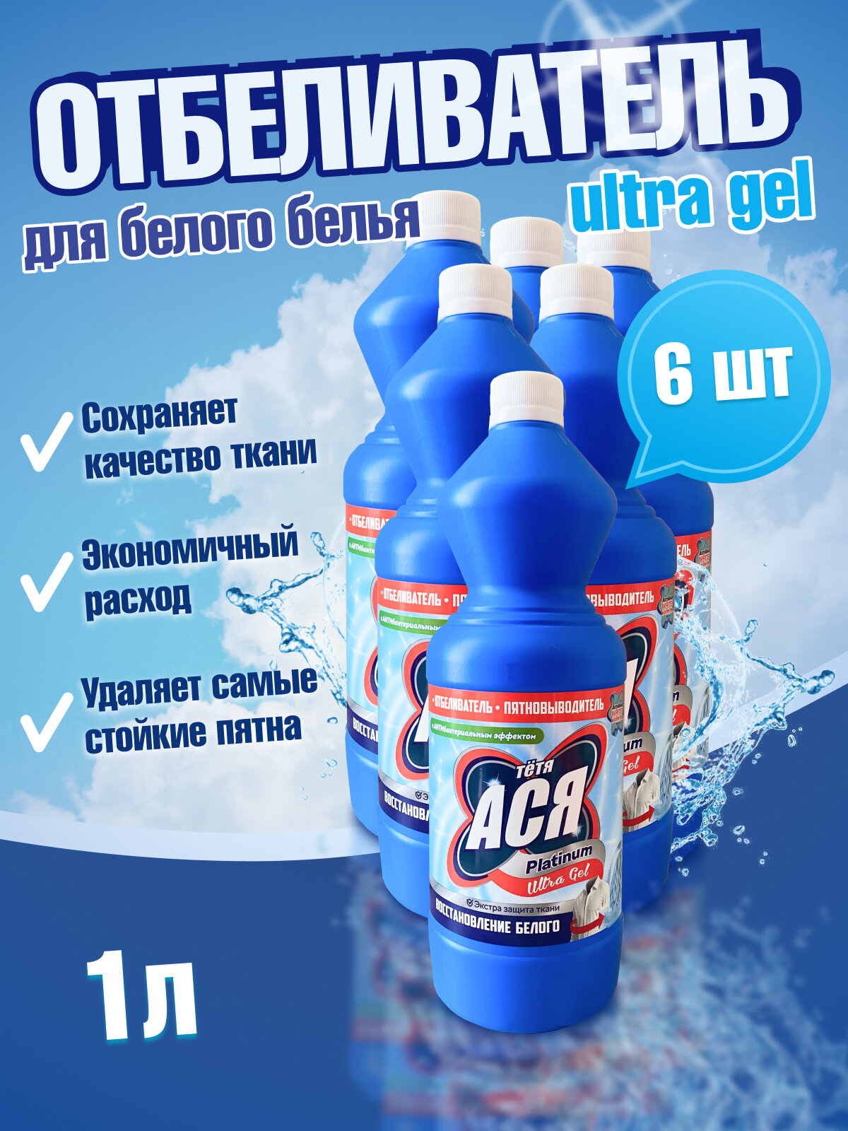 Купить Отбеливатель тетя Ася Platinum Ultra, гель 1 л для белого белья, пятновыводитель 6 шт.
