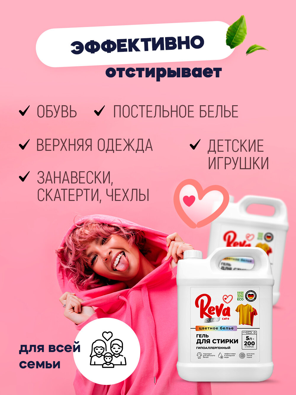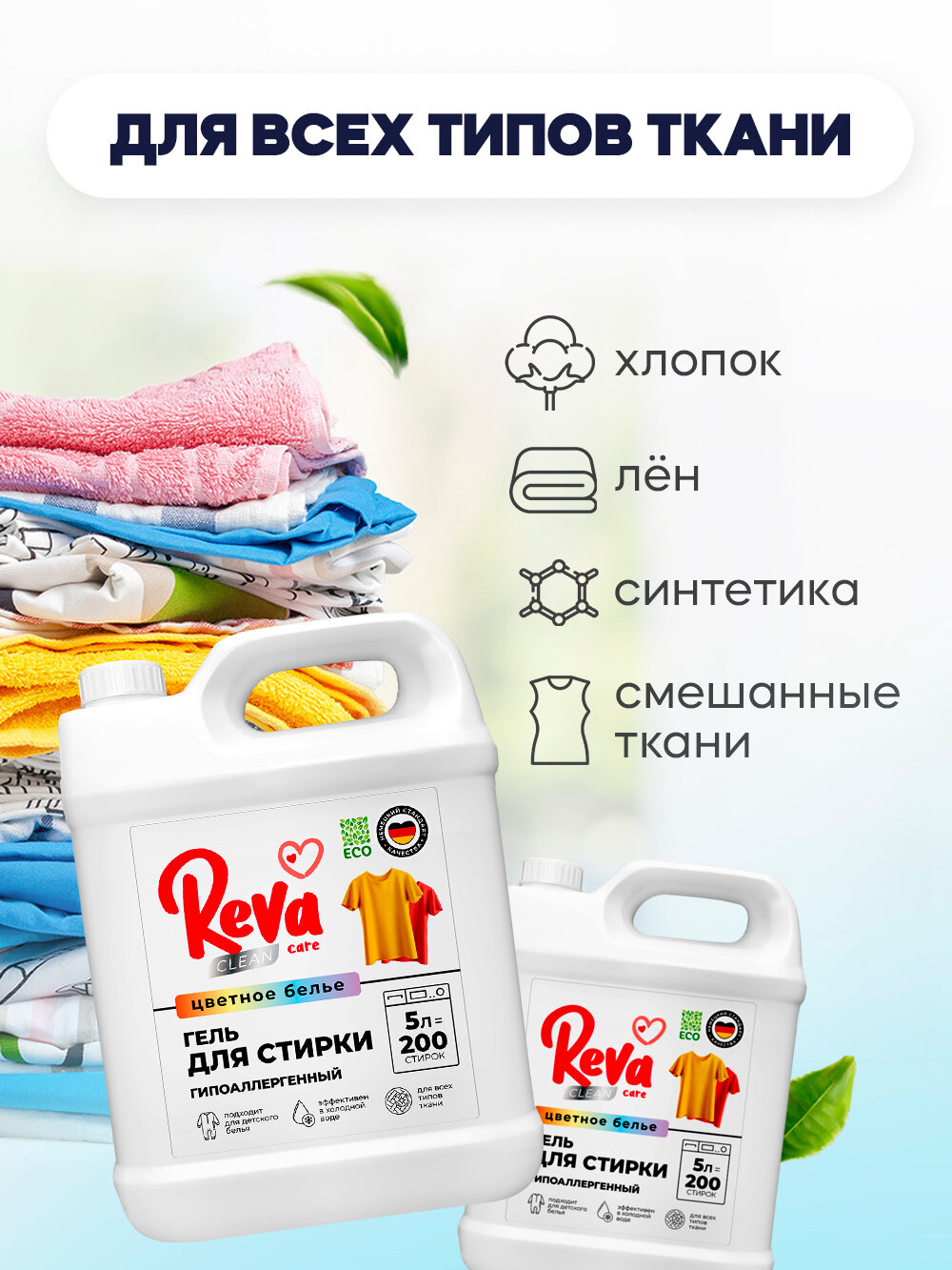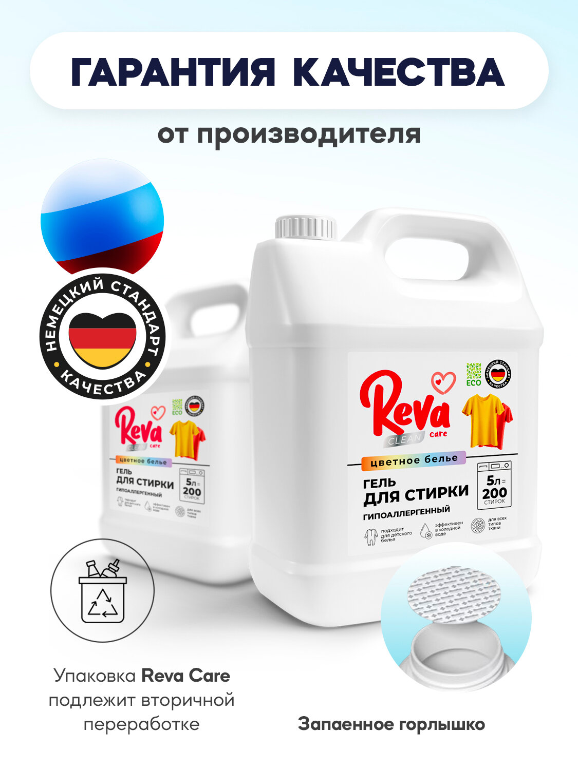 Гель для стирки 5л, Reva Care, для цветного белья, концентрат интересное: