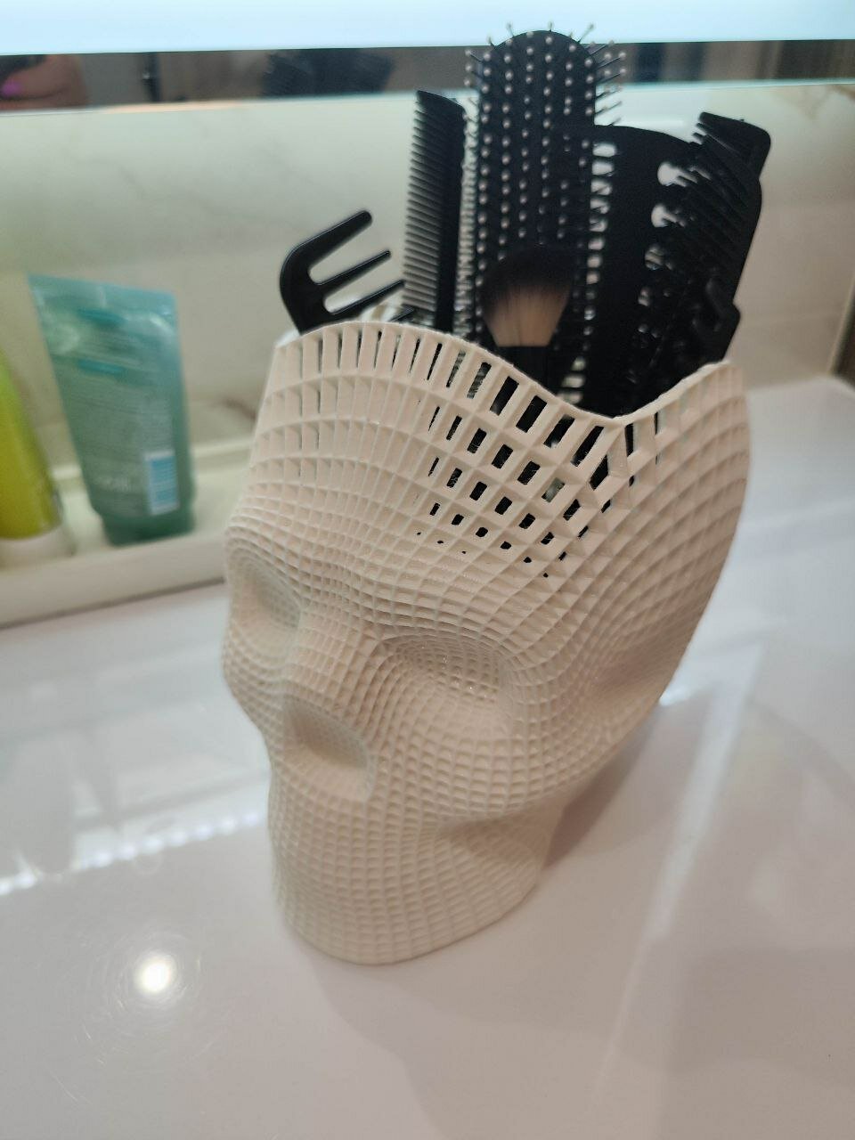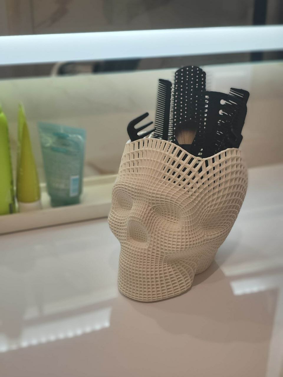 Череп - ваза белая, 18х20х14 см, ваза для конфет, декор для дома, подставка в барбершоп, стимпанк, в подарок, кашпо, Хеллоуин