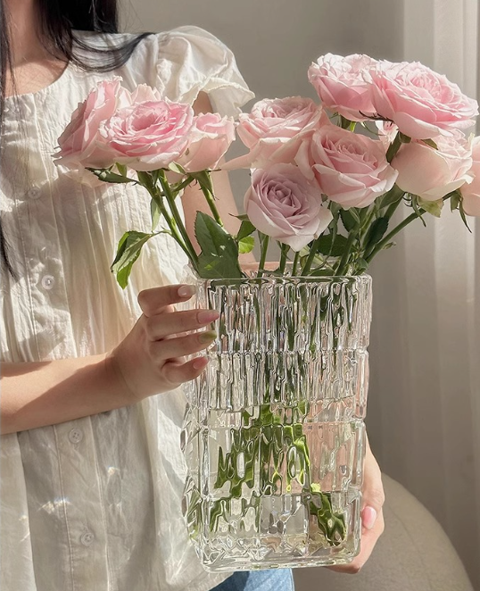 Ваза настольная для цветов из хрустального стекла (прозрачная)