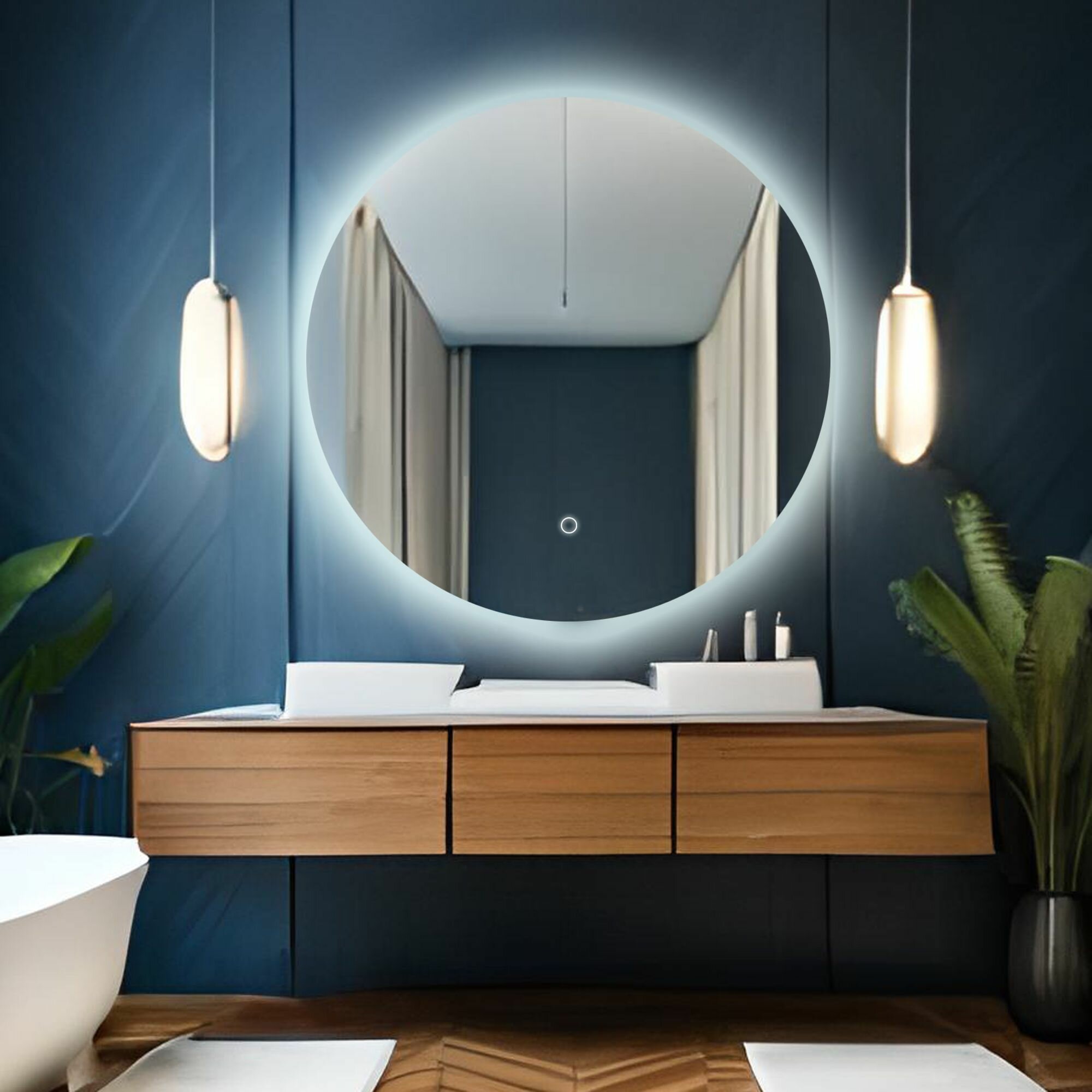 Зеркало круглое "парящее" Муза D90 для ванной с нейтральной LED-подсветкой и антизапотеванием