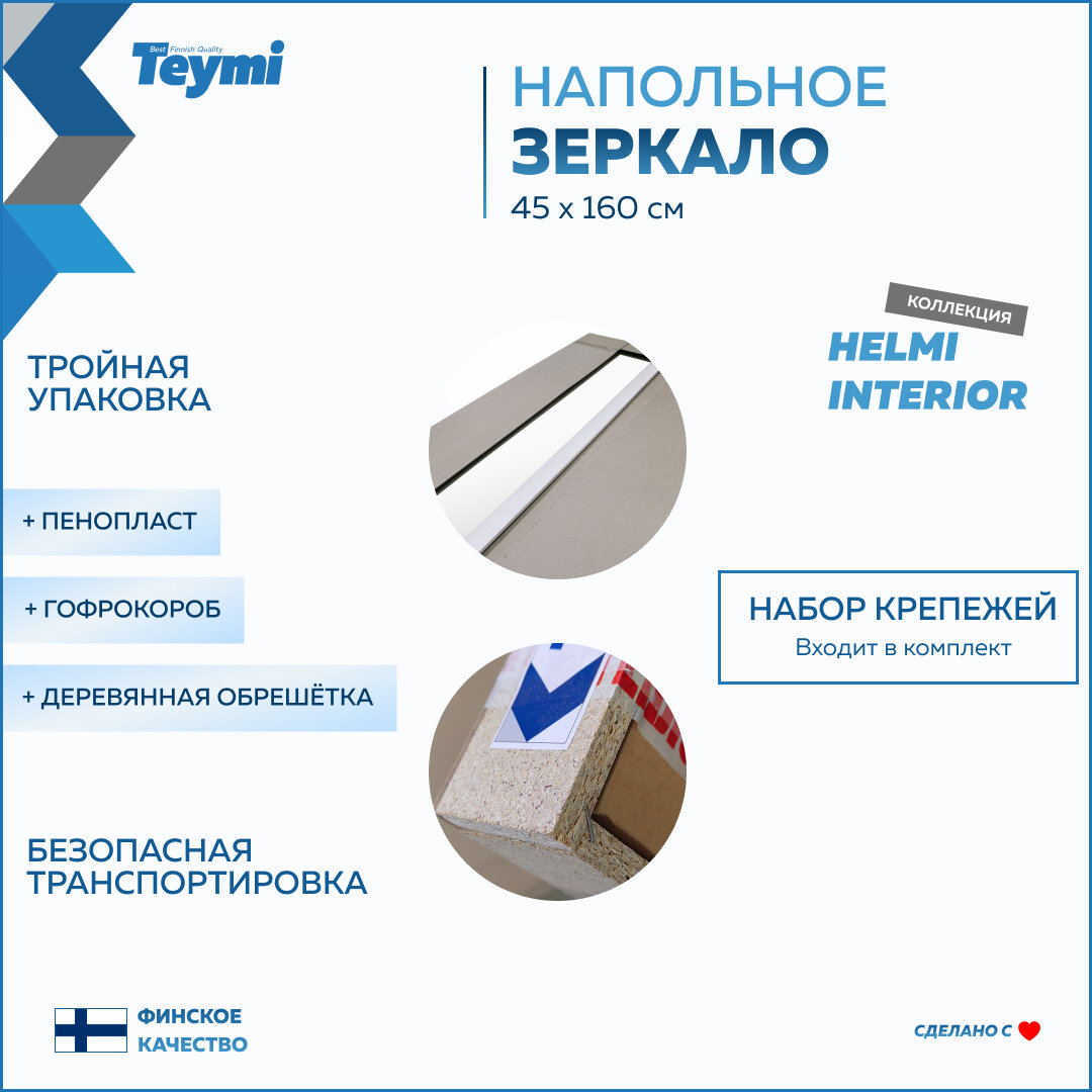 Зеркало напольное интерьерное Teymi Helmi 45x160, цвет светлый дуб T20245 интересное: