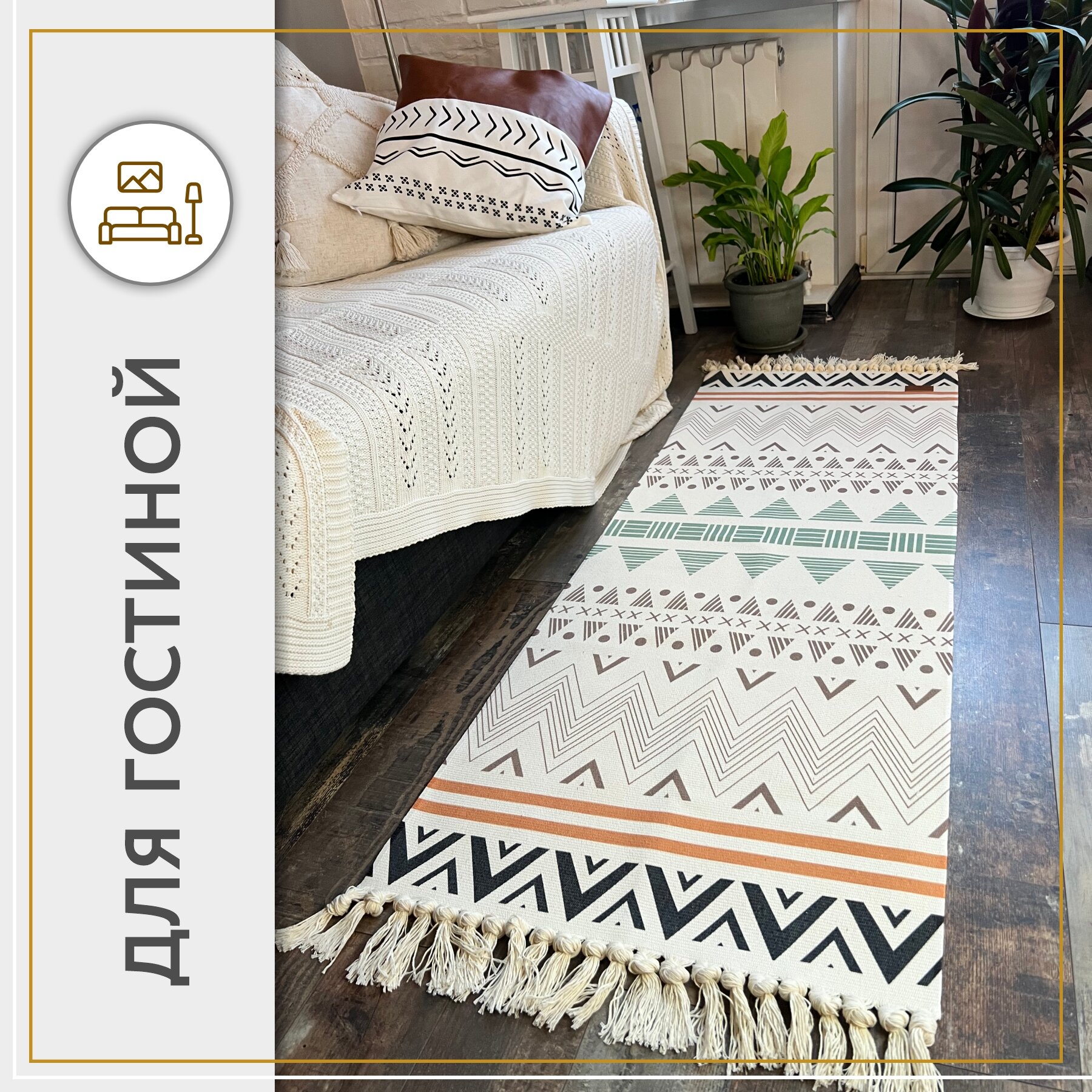 Коврик прикроватный в ЭКО-стиле/Коврик для ванной/Коврик в детскую 60*150 см