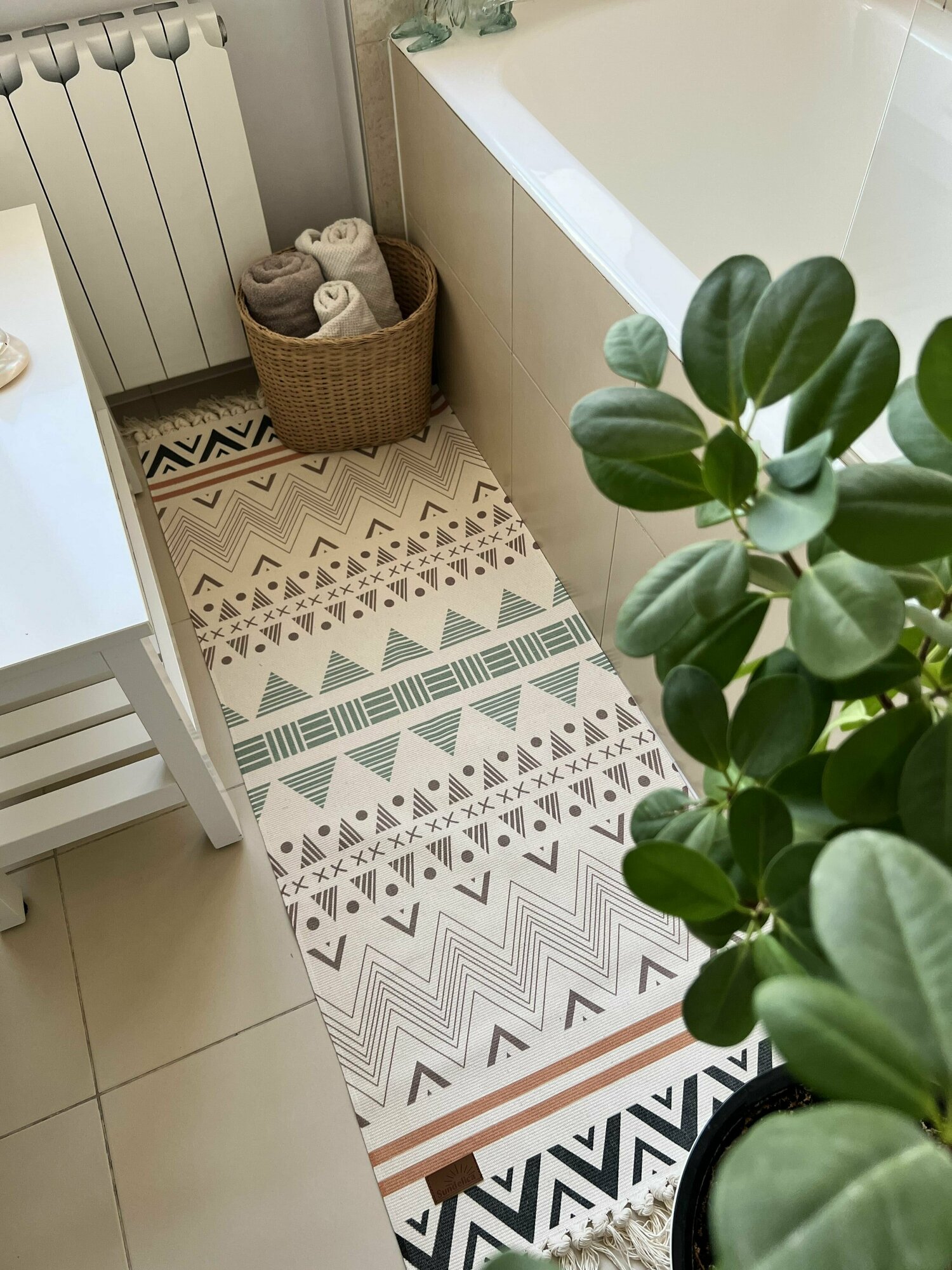 Коврик Sundelica для кровати 120x180, безворсовый, хлопок, цвет бежево-зеленый