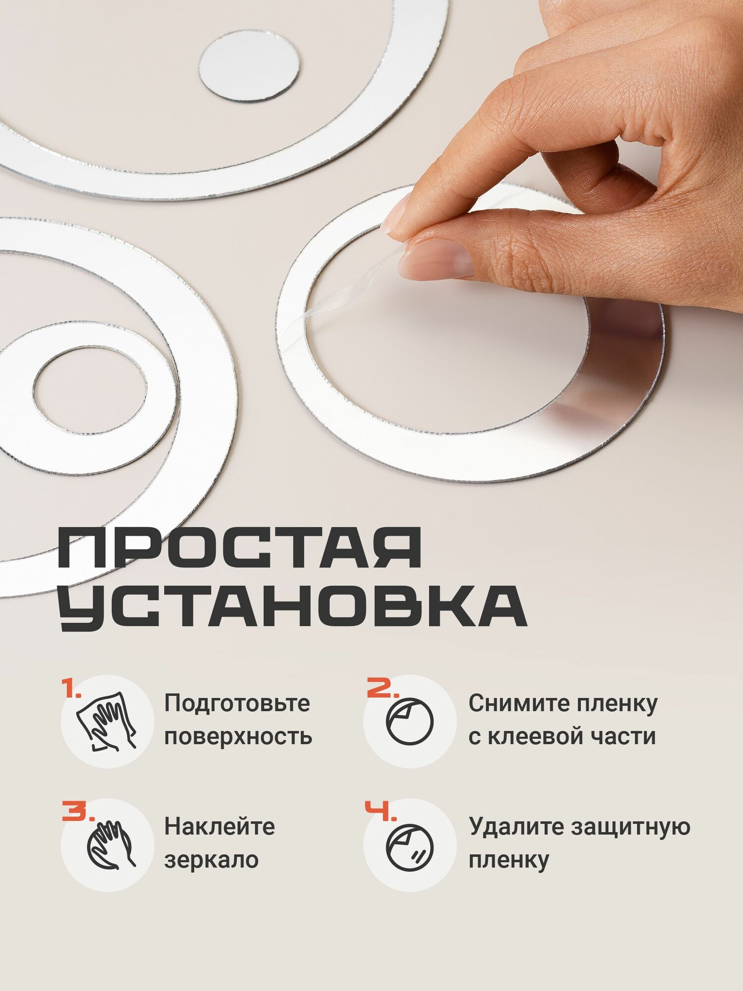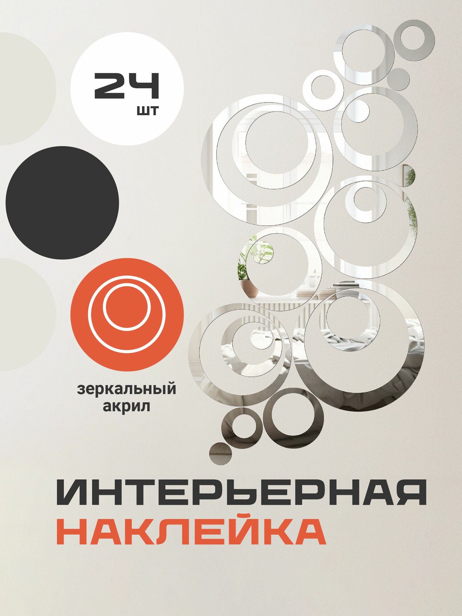 Наклейки на стену для декора Birdhouse, Зеркальные наклейки интерьерные на стену, Кольца, 24 шт.