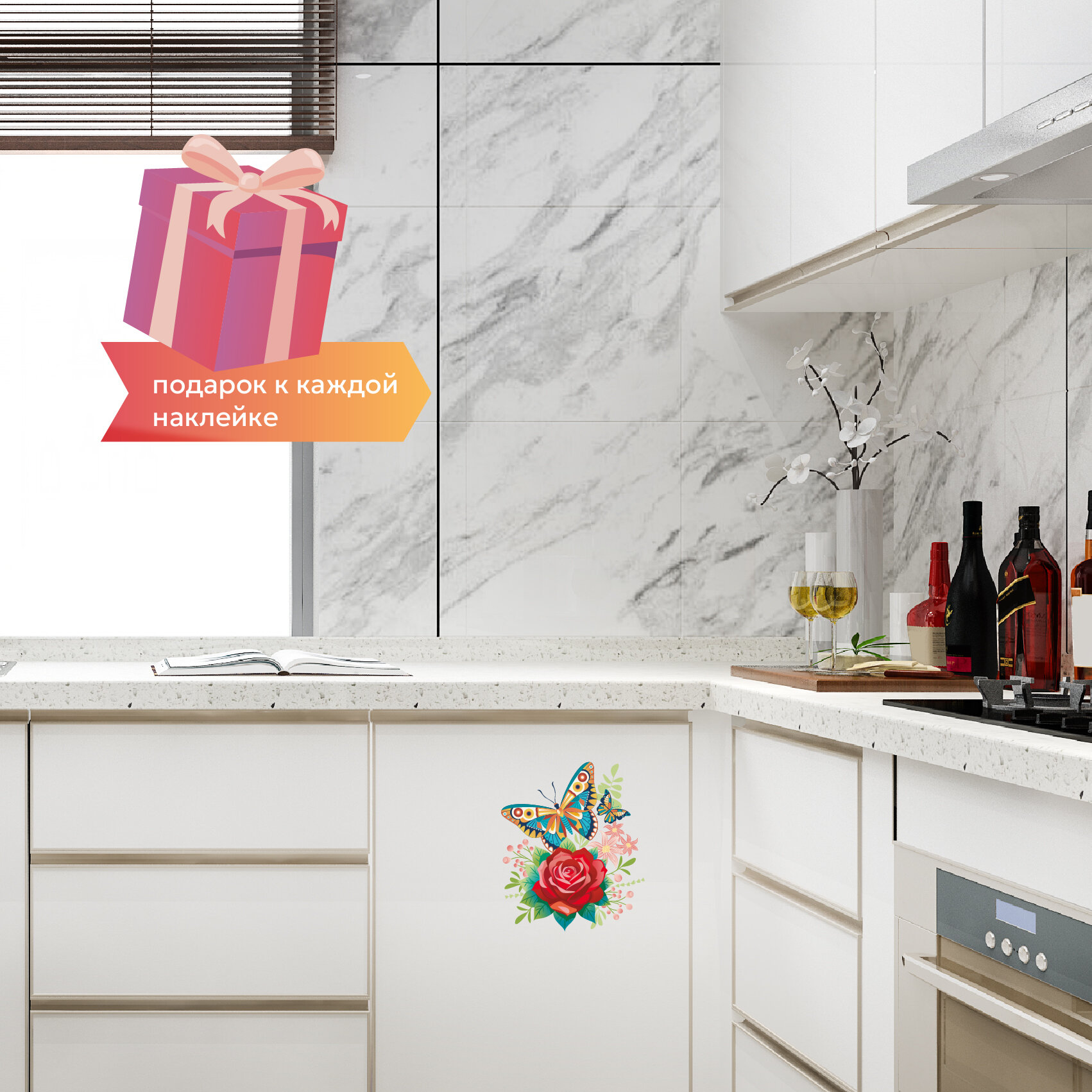 Красивые самоклеящиеся интерьерные наклейки для дома, для дачи, для бани на фасад кухни, на холодильник, на унитаз цветы