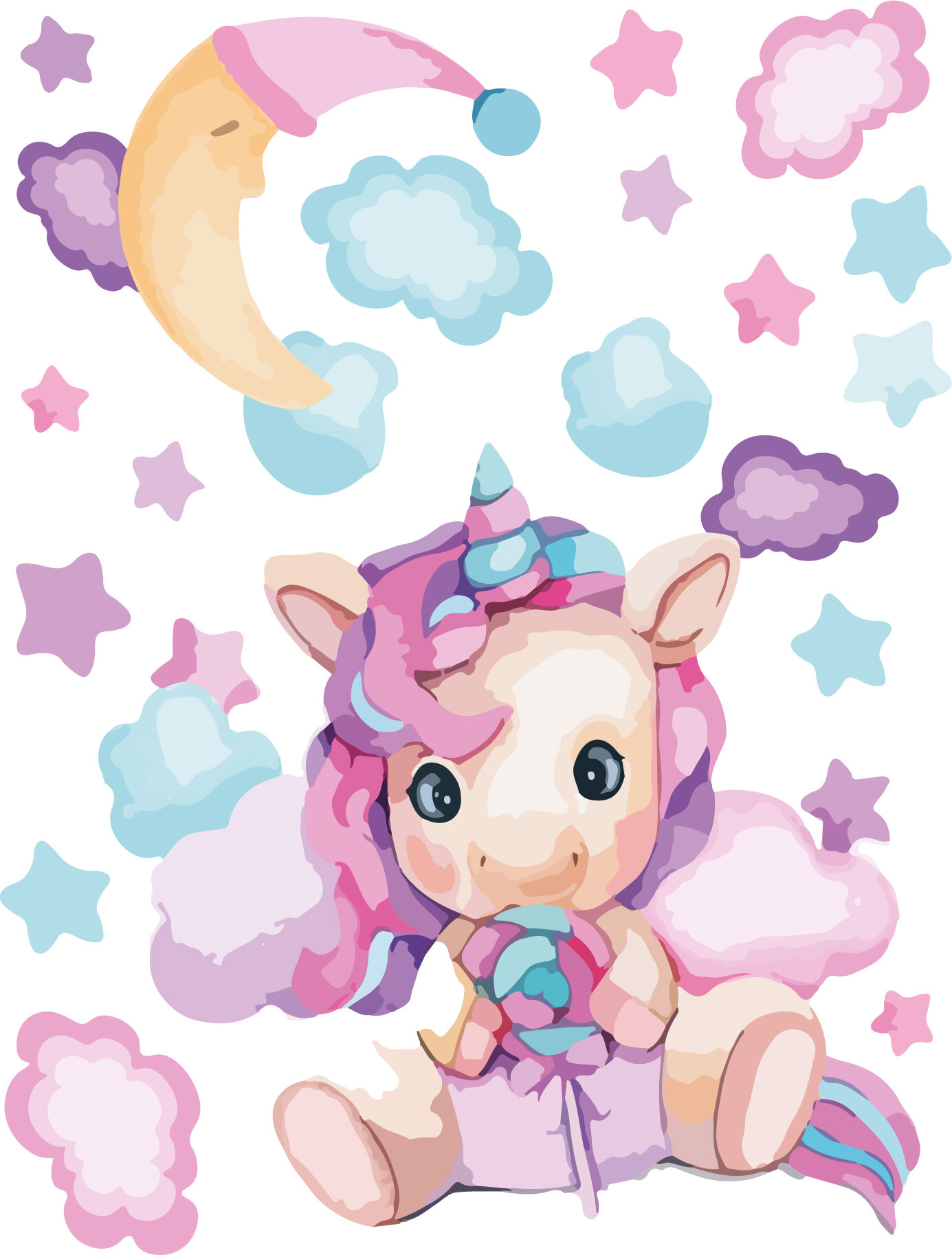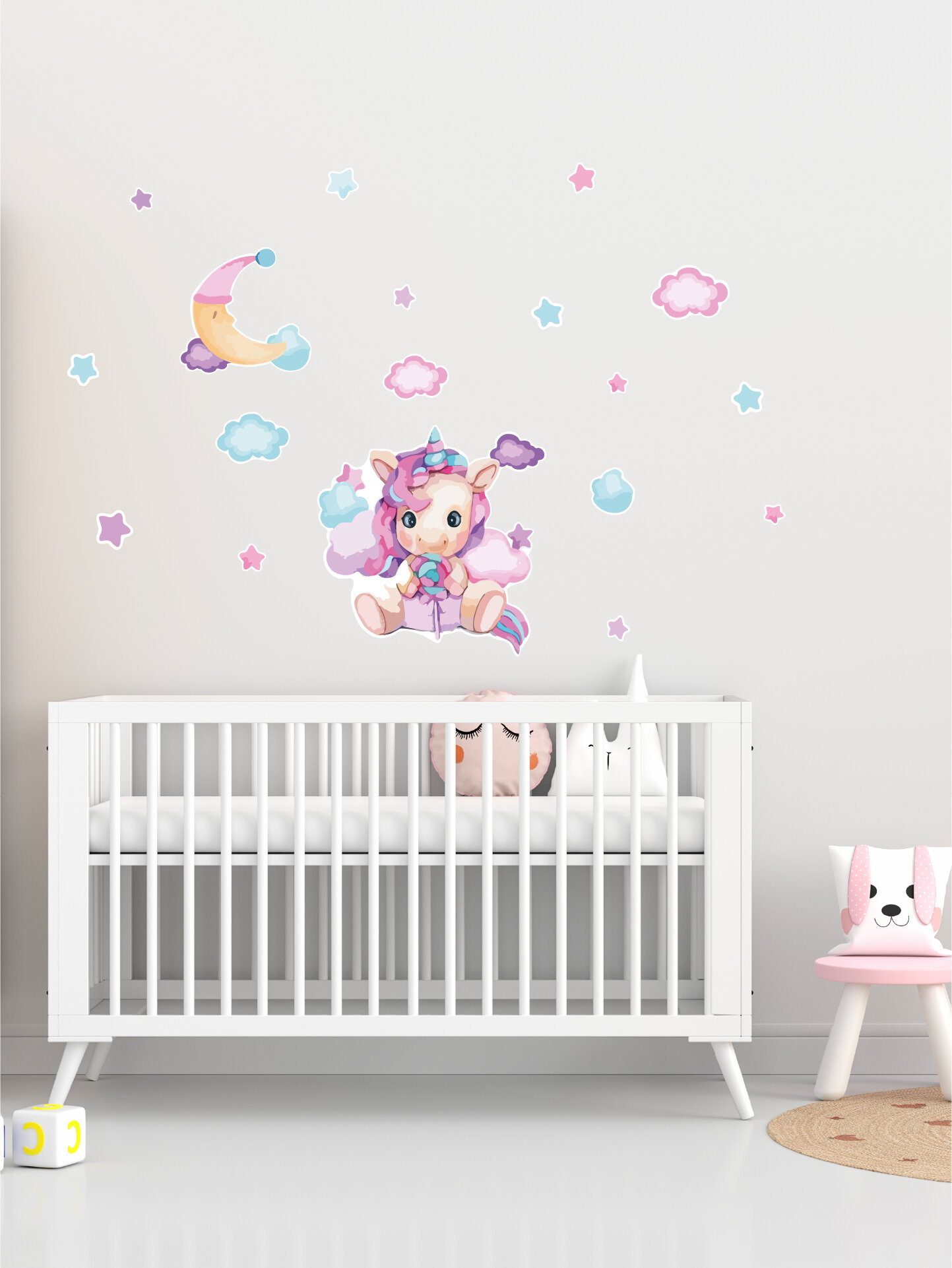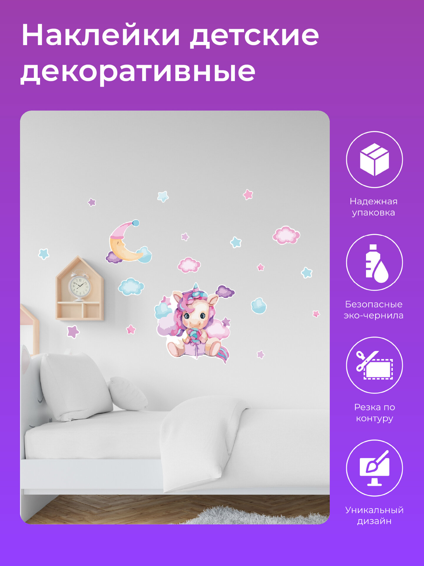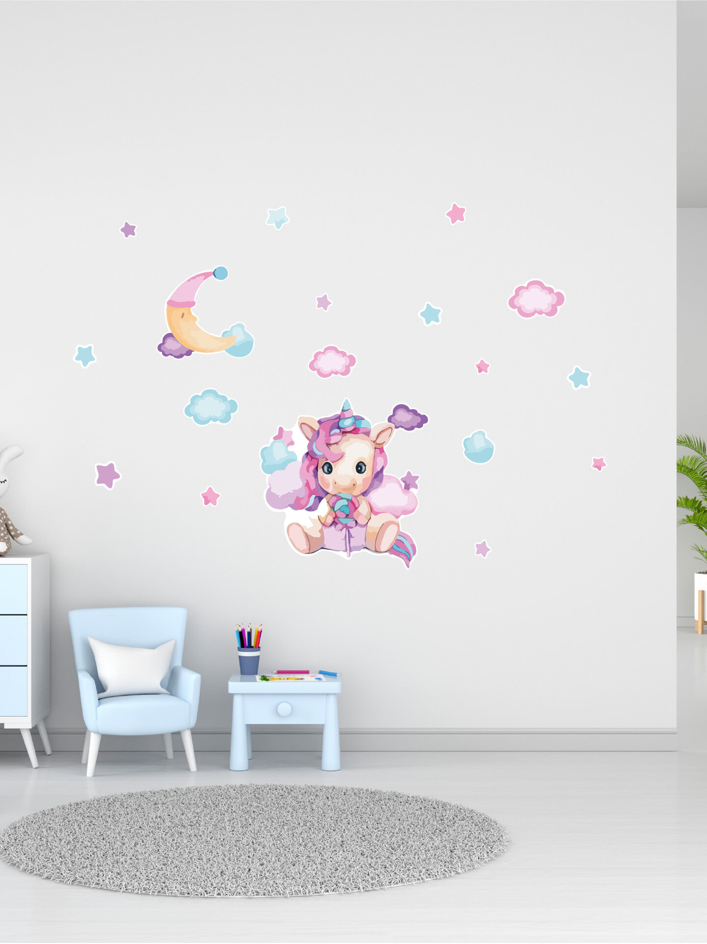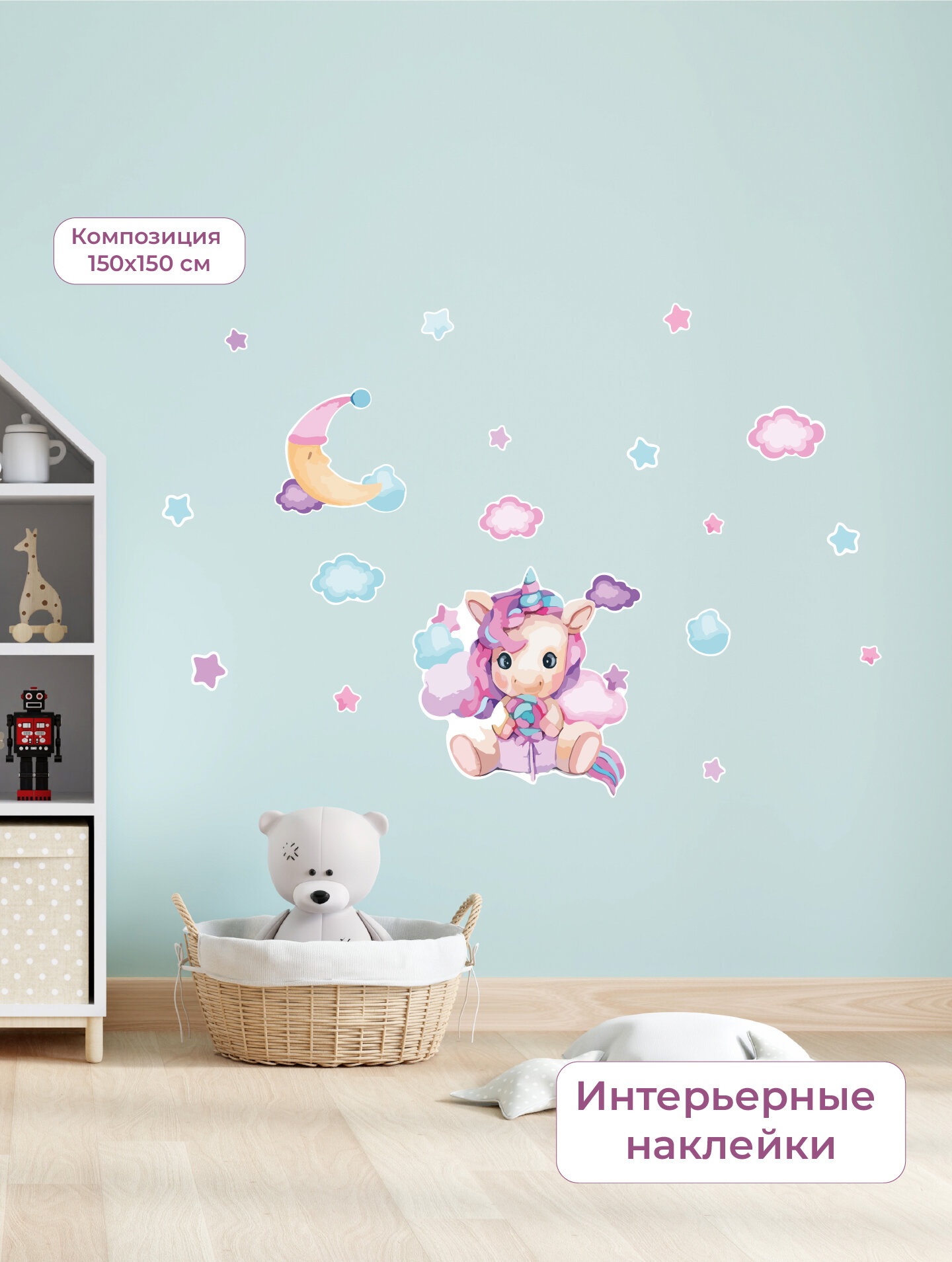 Купить Набор нежных самоклеящихся наклеек на стену в детскую комнату Единорог в облаках
