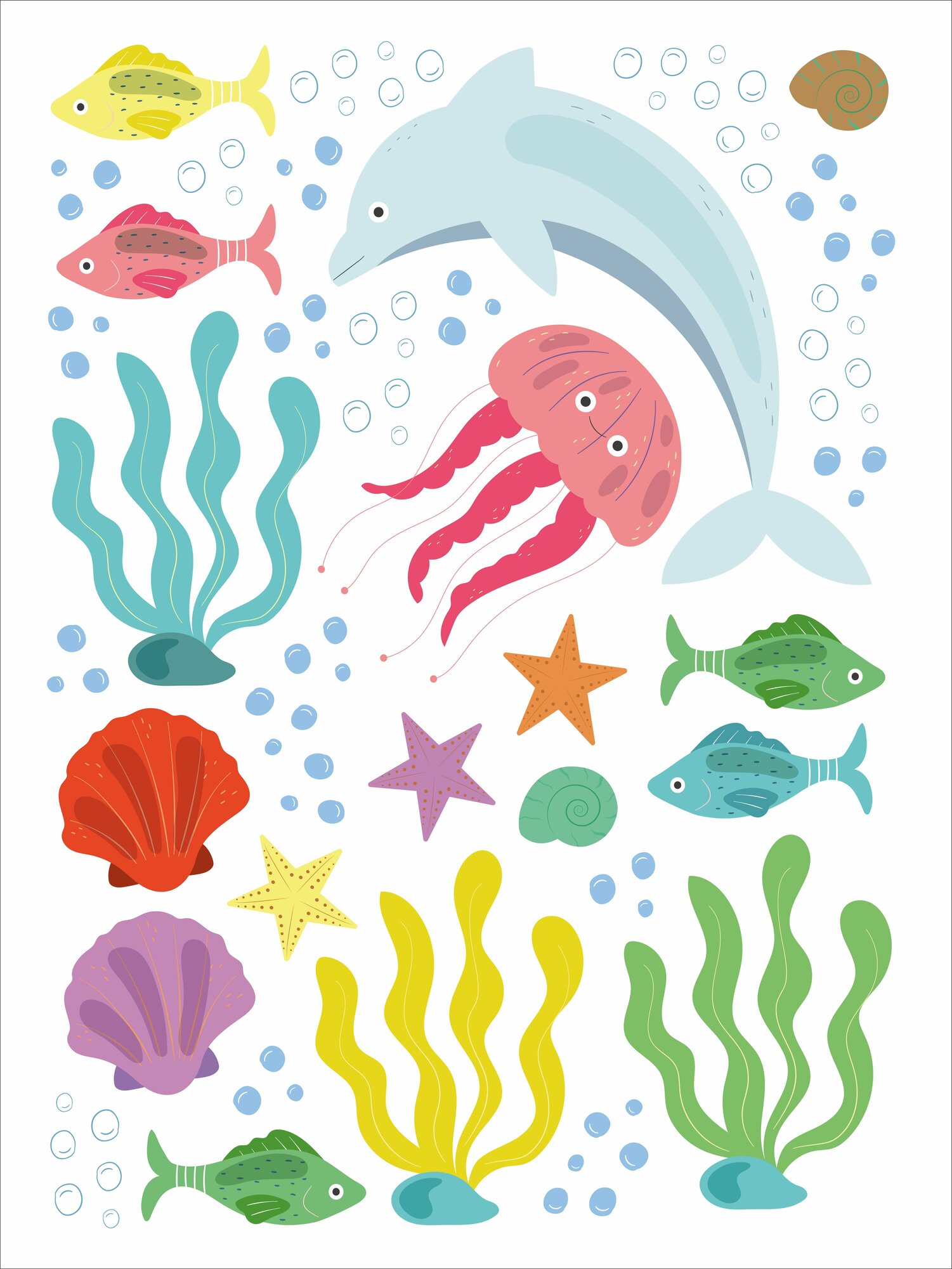 Купить Наклейки интерьерные влагостойкие с морскими животными в детский садик, бассейн, в ванную комнату