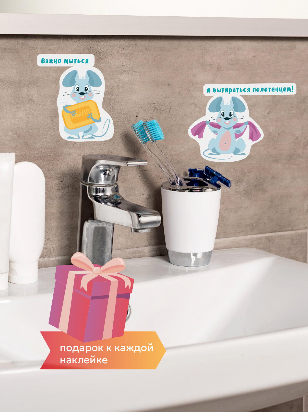 СохранитьНаклейки с мышками парные напоминалка детям в ванной и туалете 2 штуки интересное: