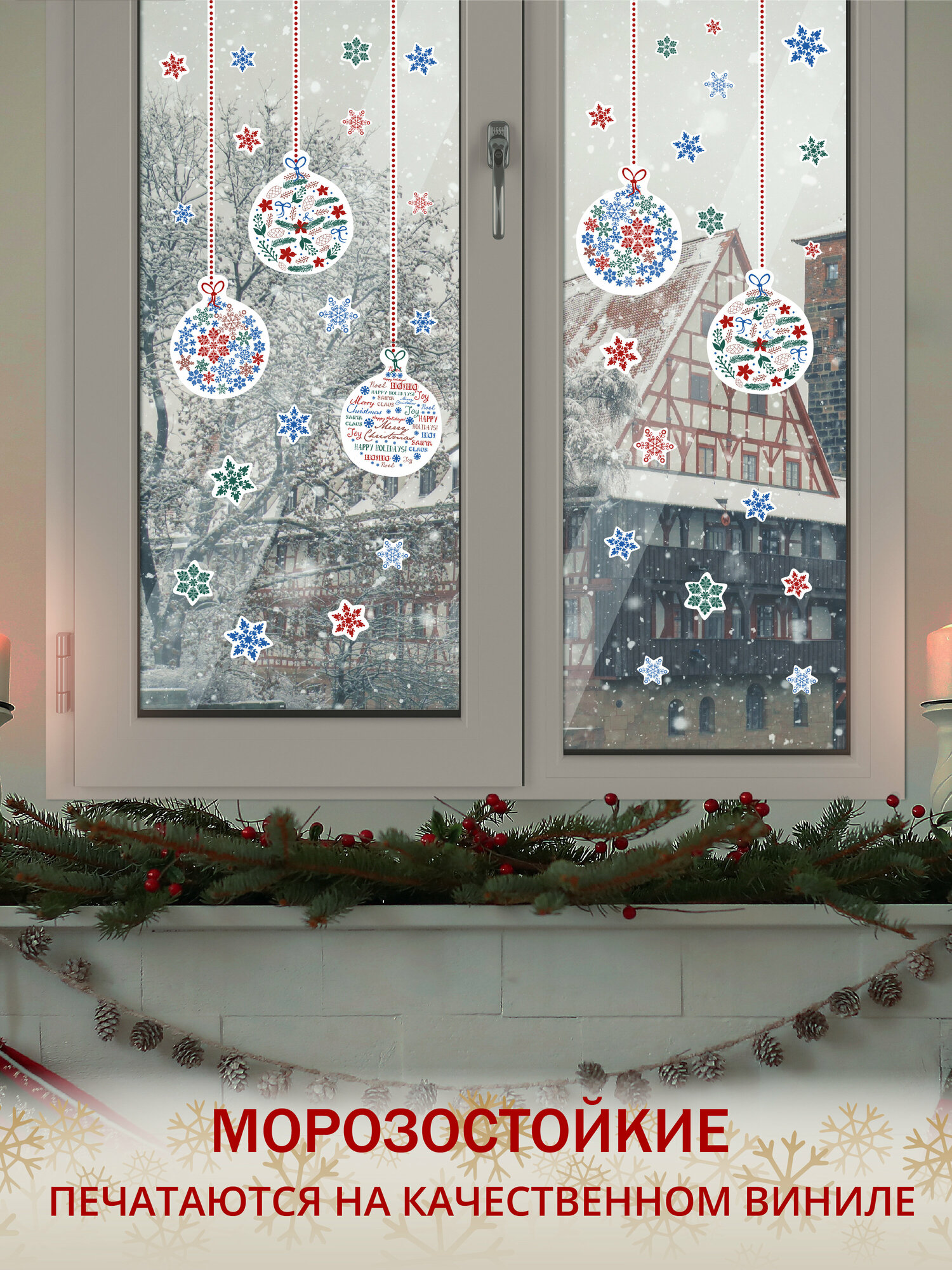 Купить Большой набор новогодних наклеек на окна/двери/стекла/зеркало