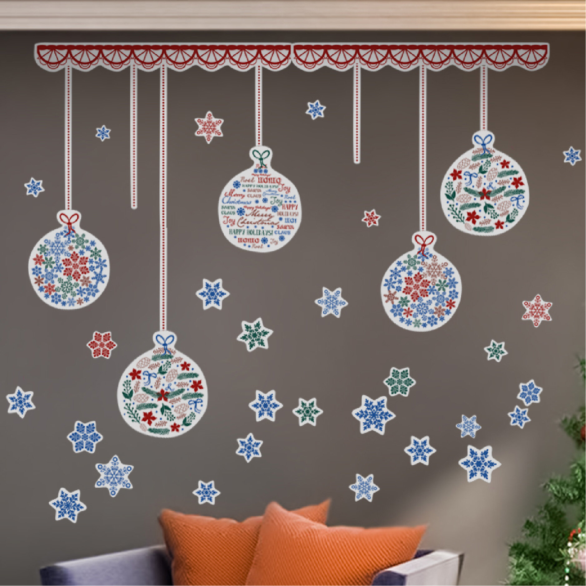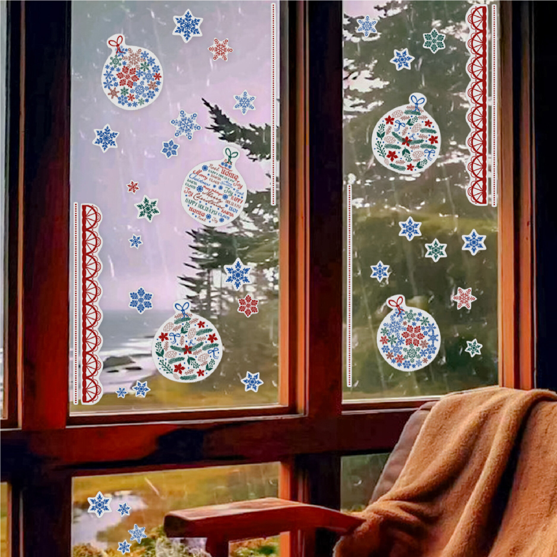 Большой набор новогодних наклеек на окно / дверь / окно / зеркало