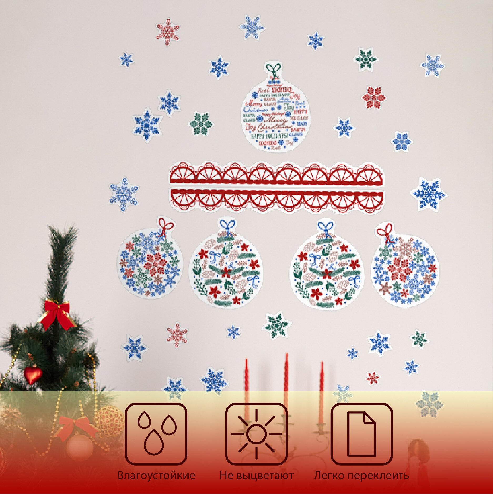 Новогодние интерьерные наклейки UND, цвет красный, влагостойкие, термостойкие, комплект