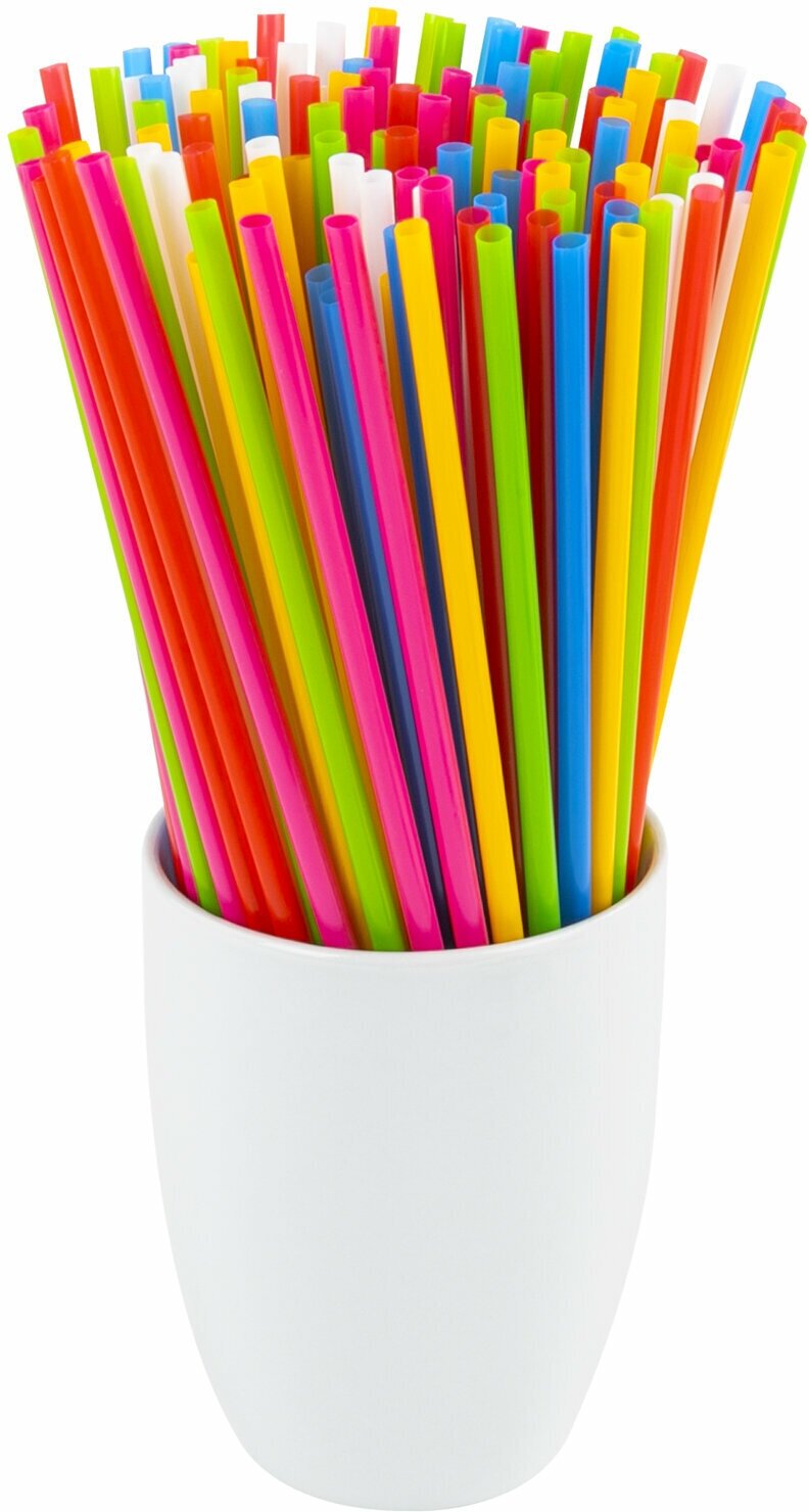 Одноразовые трубочки для напитков / коктейлей прямые, пластиковые, 5 х 210 мм, цветные, Комплект 250 штук, Laima, 608356
