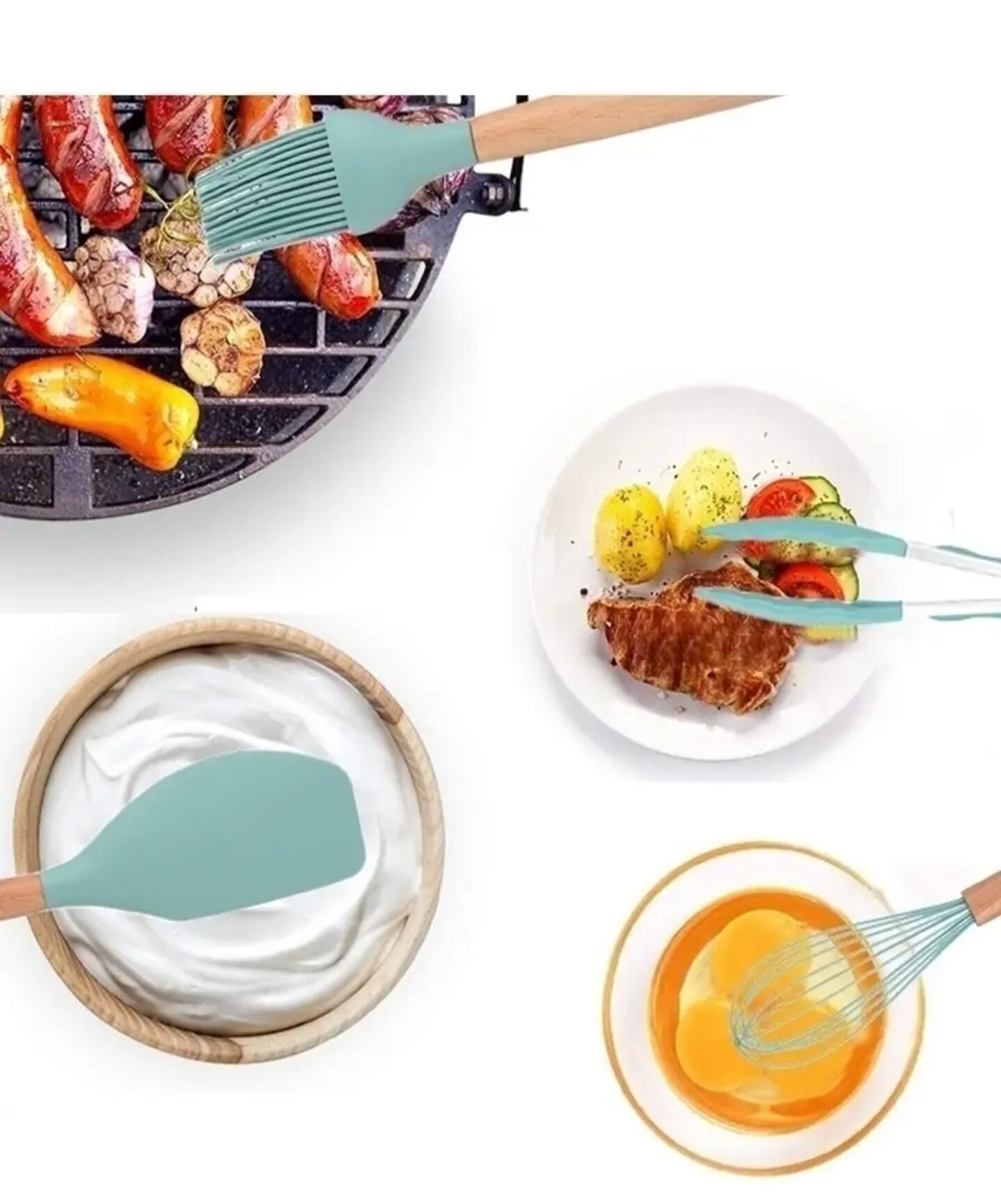 Набор кухонных принадлежностей из бука и силикона интересное: