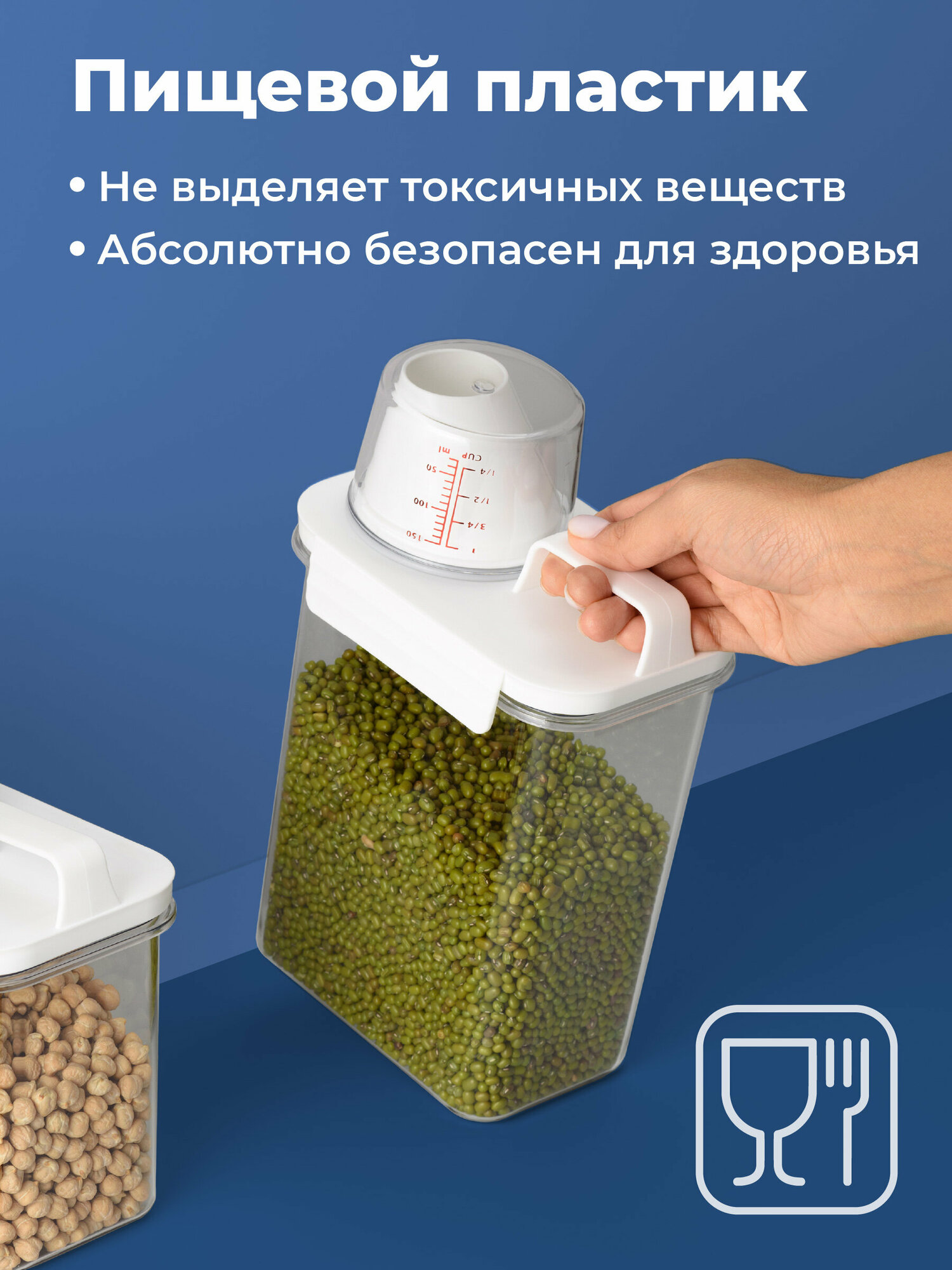 Контейнер для хранения круп и сыпучих продуктов с дозатором Birdhouse, Емкость для стирального порошка и геля, 1800 мл, 2 шт