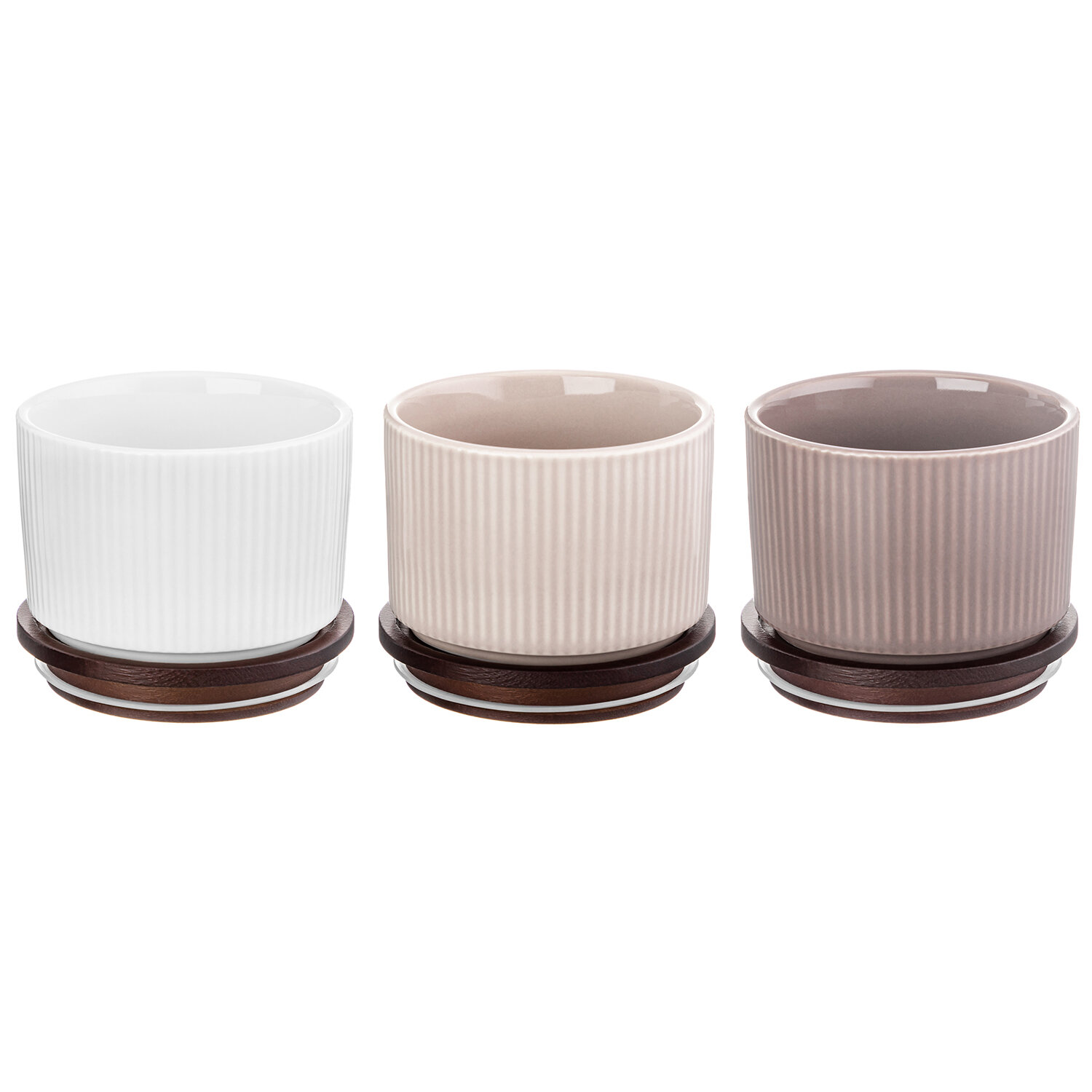 | Дополнительная информация | Набор 3 банок для хранения "Колоранс - Полоски" белая, бежевая, кофейная, 9,3х9,3х7 см, 250 мл - каждая, с деревянной крышкой-подставкой с силиконовым уплотнителем, высота без крышки - 6 см |