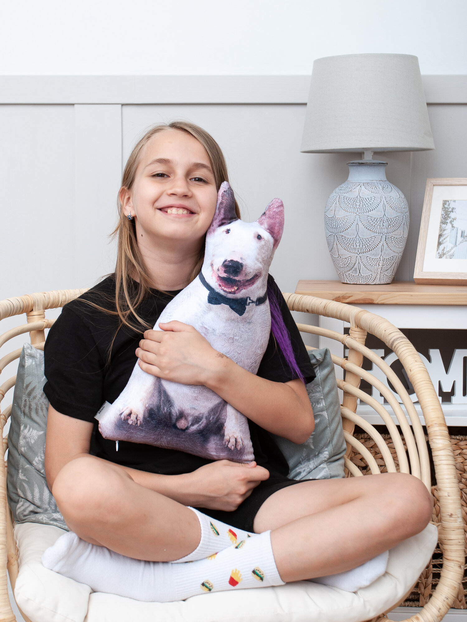 СохранитьРеалистичная мягкая подушка-игрушка собака Бультерьер от бренда Нескучные вещи интересное: