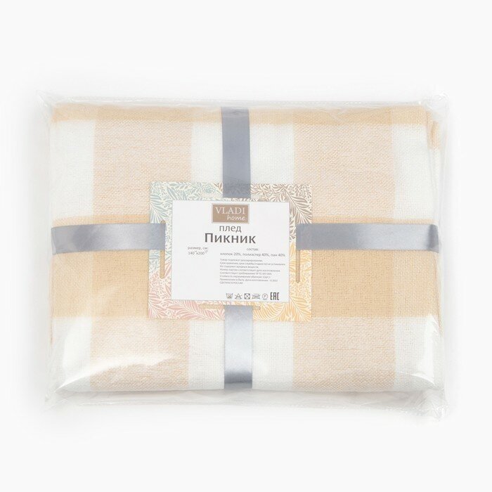 Влади Плед Пикник 140х200см, цвет белый/бежевый/серый, хлопок 20%, пан 40%, полиэстер 40%