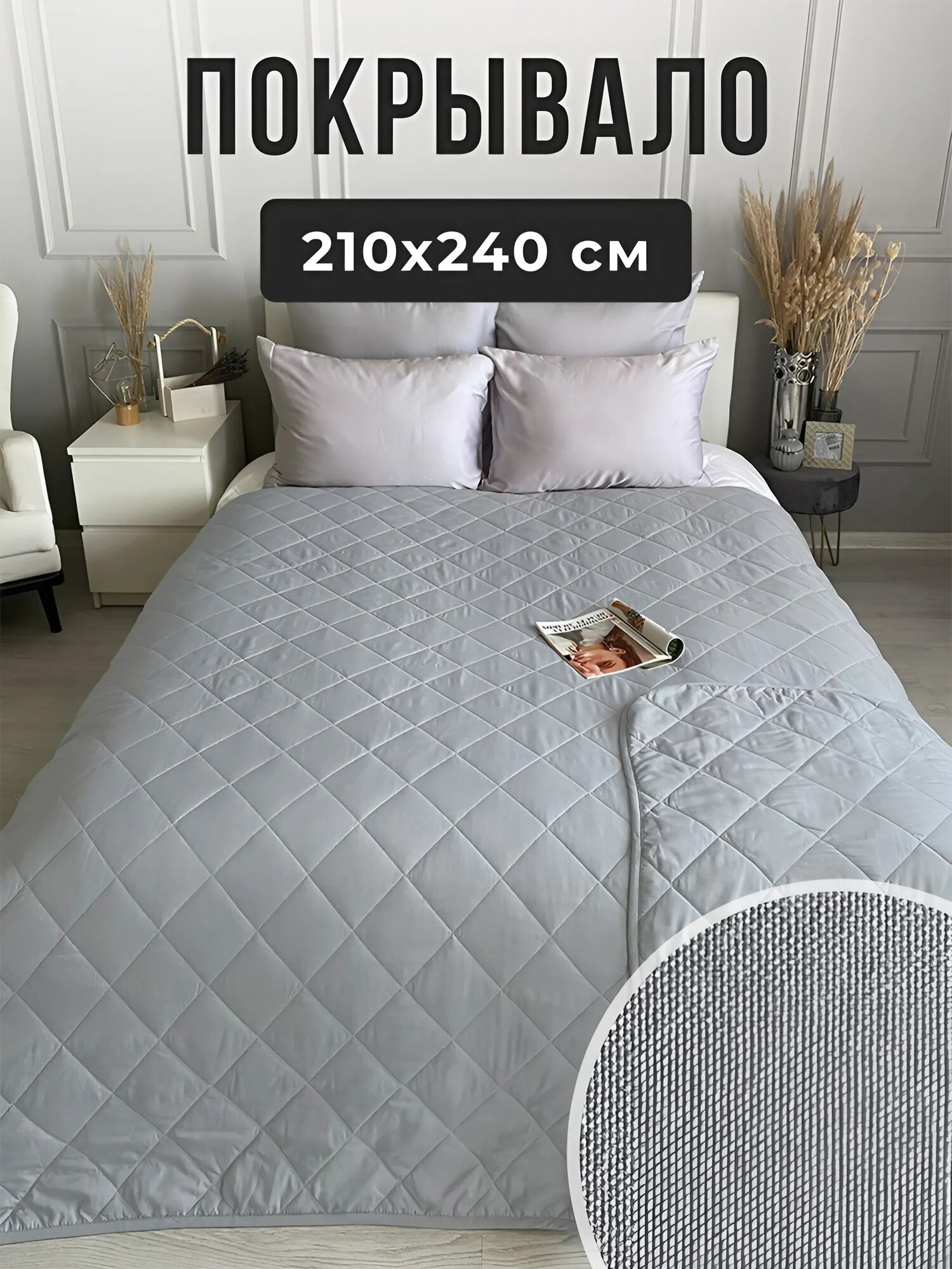 СохранитьПокрывало на кровать и диван 210х240 см стеганое, Ушки Подушки, двухстороннее, серое интересное: