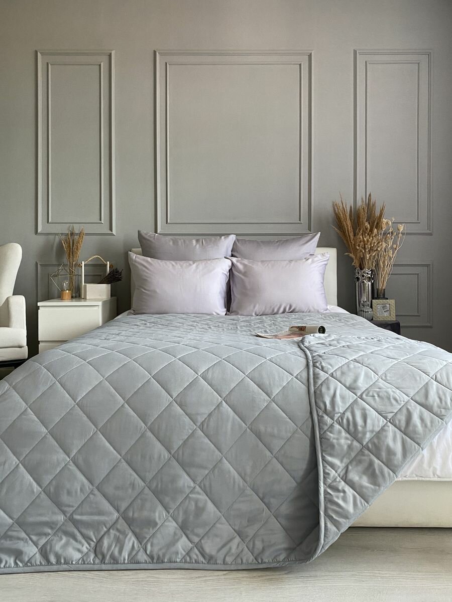 Купить Покрывало на кровать и диван 210х240 см стеганое, Ушки Подушки, двухстороннее, серое