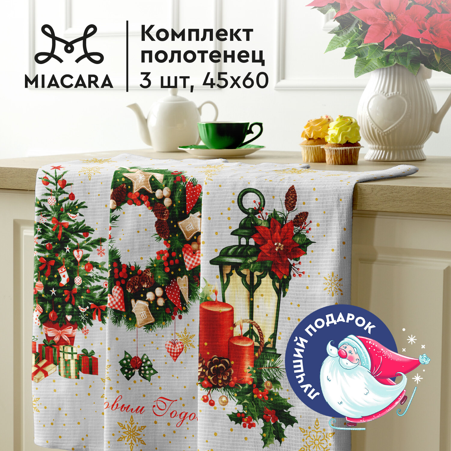 Кухонные полотенца вафельные 45х60 (3 шт.) Mia Cara 30681-1 Новогодние подарки
