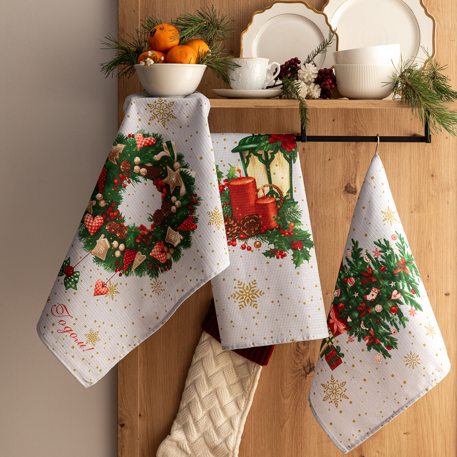 СохранитьКухонные полотенца вафельные 45х60 (3 шт.) Mia Cara рис 30586-1 Рождество интересное:
