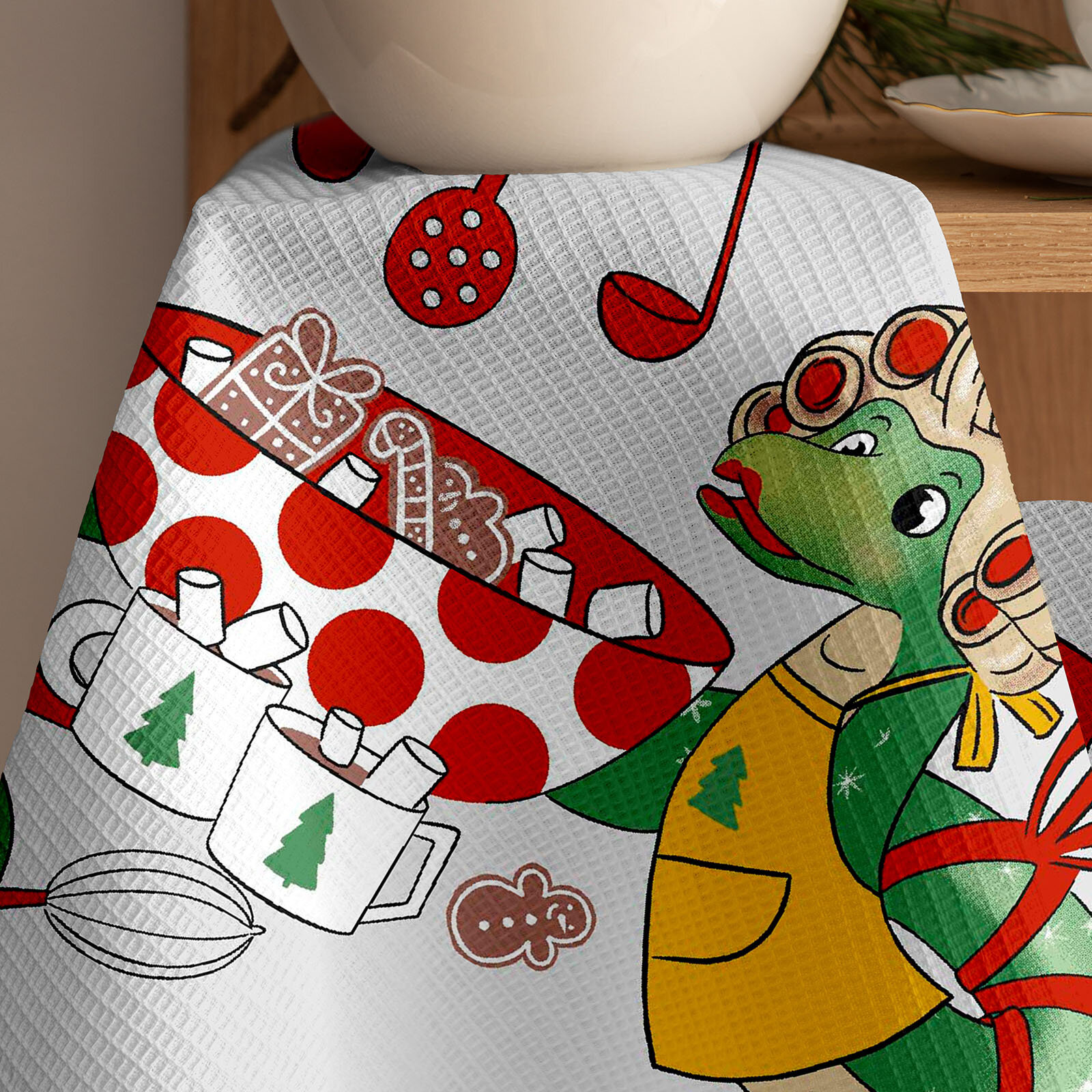 Кухонные полотенца вафельные 45х60 (3 шт.) Mia Cara рис 30440-1 Новогодние эльфы