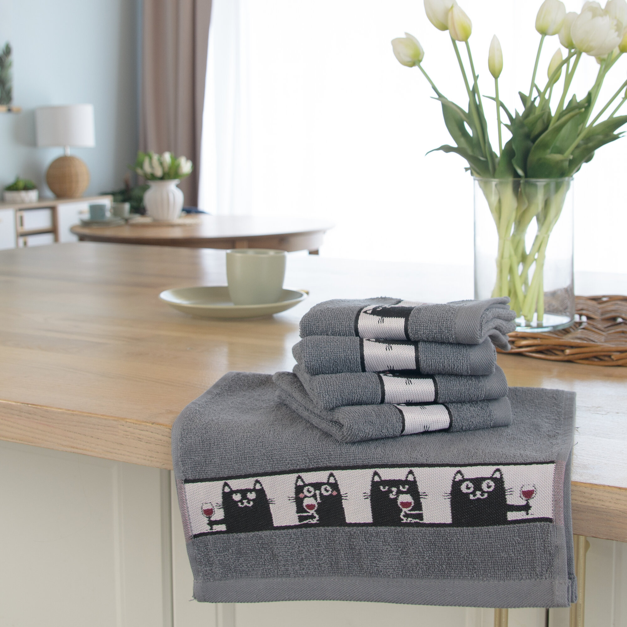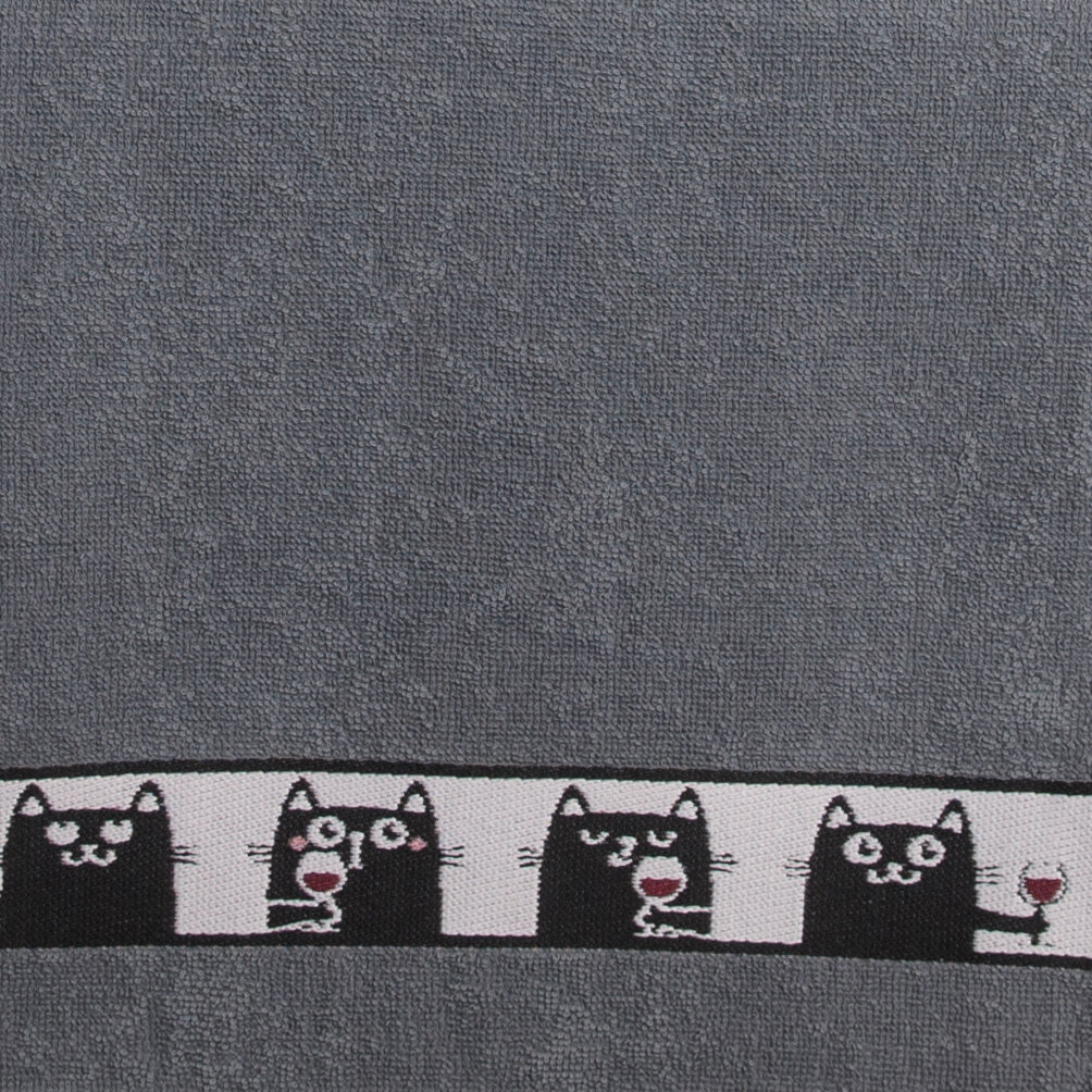 Полотенца махровые кухонные, 30х60 см, набор 5 шт, с петелькой, Casa Conforte Китчен Котики-поварята, светло-серые
