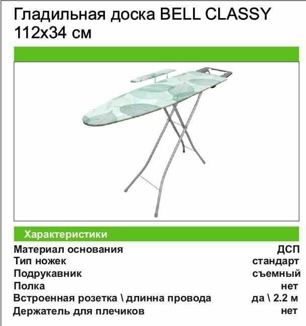 | Подробная комплектация | Гладильная доска Bell Classy 3 |