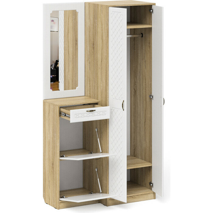 Купить Прихожая Мебельный двор П-6 Компоновка № 17 дуб сонома/фасады МДФ белое дерево фрезеровка ромб (1025040)