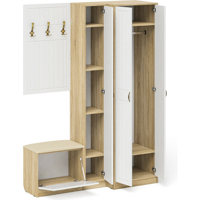 Мебель для прихожей П-6 № 18, цвет дуб сонома/фасады МДФ белое дерево фрезеровка ромб, ШхГхВ 120х50х210 см., универсальная сборка
