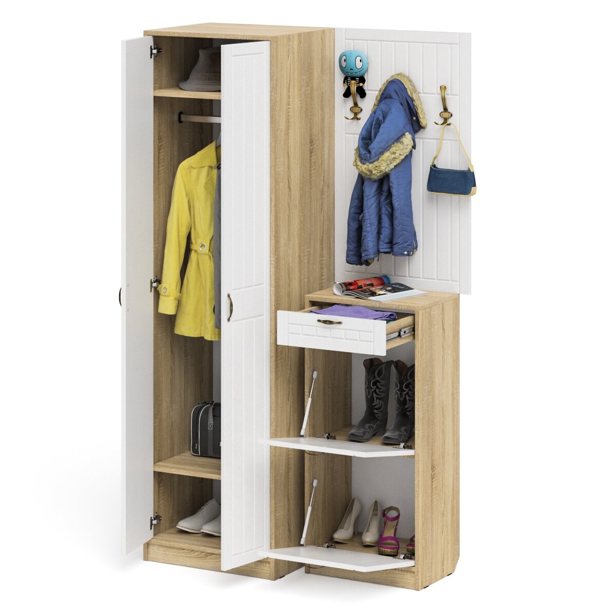 Мебель для прихожей П-6 № 18, цвет дуб сонома/фасады МДФ белое дерево фрезеровка прованс, ШхГхВ 120х50х210 см., универсальная сборка