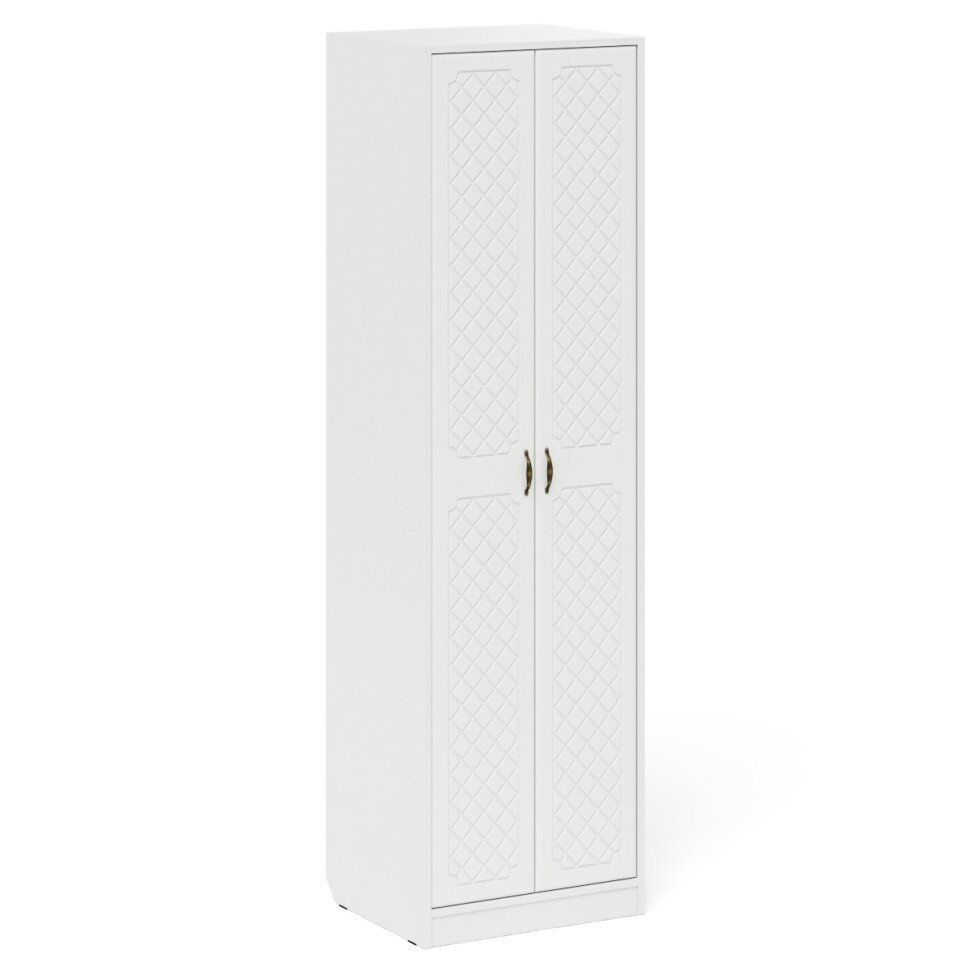 Высокая обувница с зеркалом и пеналом П-6, цвет белая шагрень/фасады МДФ белое дерево фрезеровка ромб, ШхГхВ 80х35х210 см, универсальная сборка