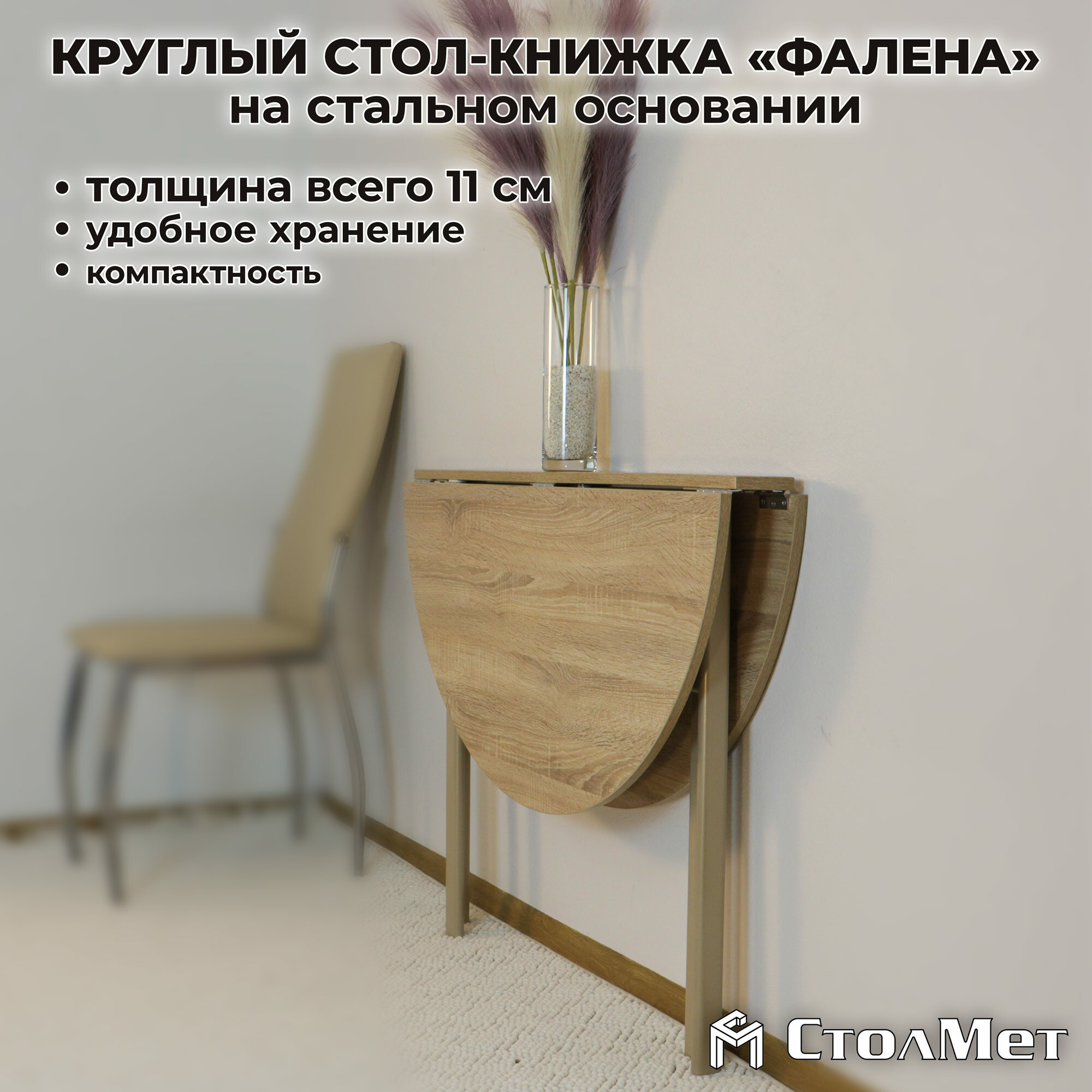 Круглый стол-книжка «Фалена», 100, дуб сонома, серебристый