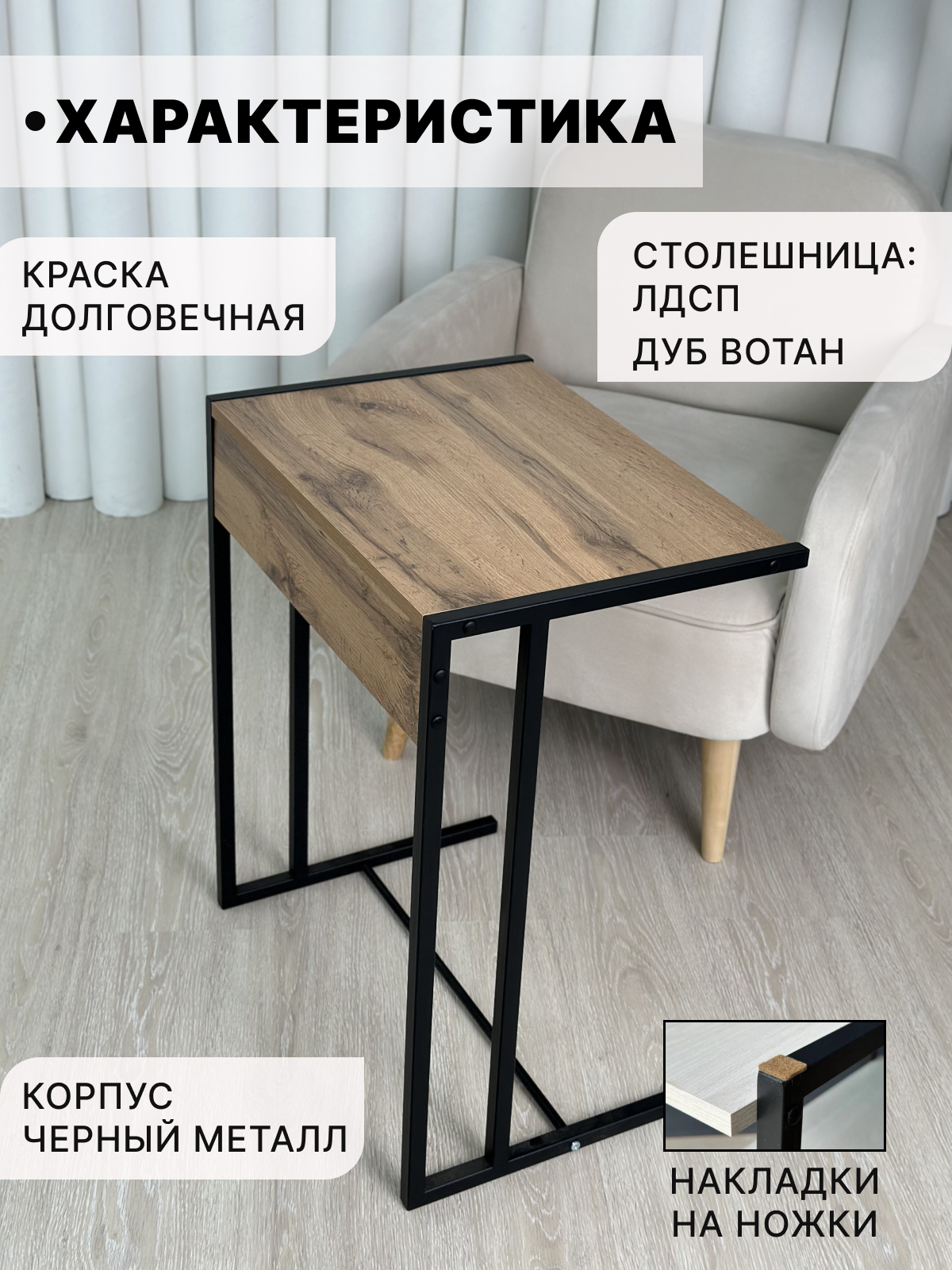 Столик журнальный приставной MEBEL.VSTILE лофт вотан черный