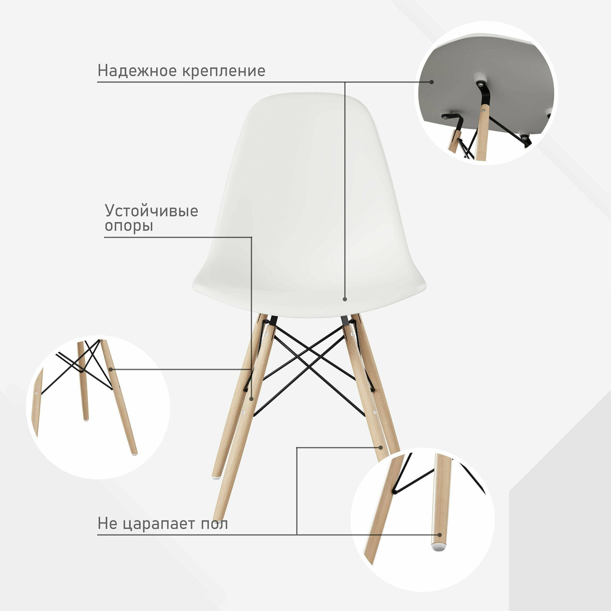 СохранитьСтулья для кухни комплект 2 шт со спинкой СтулБержи EAMES DSW, деревянные ножки, белый, пластиковый интересное: