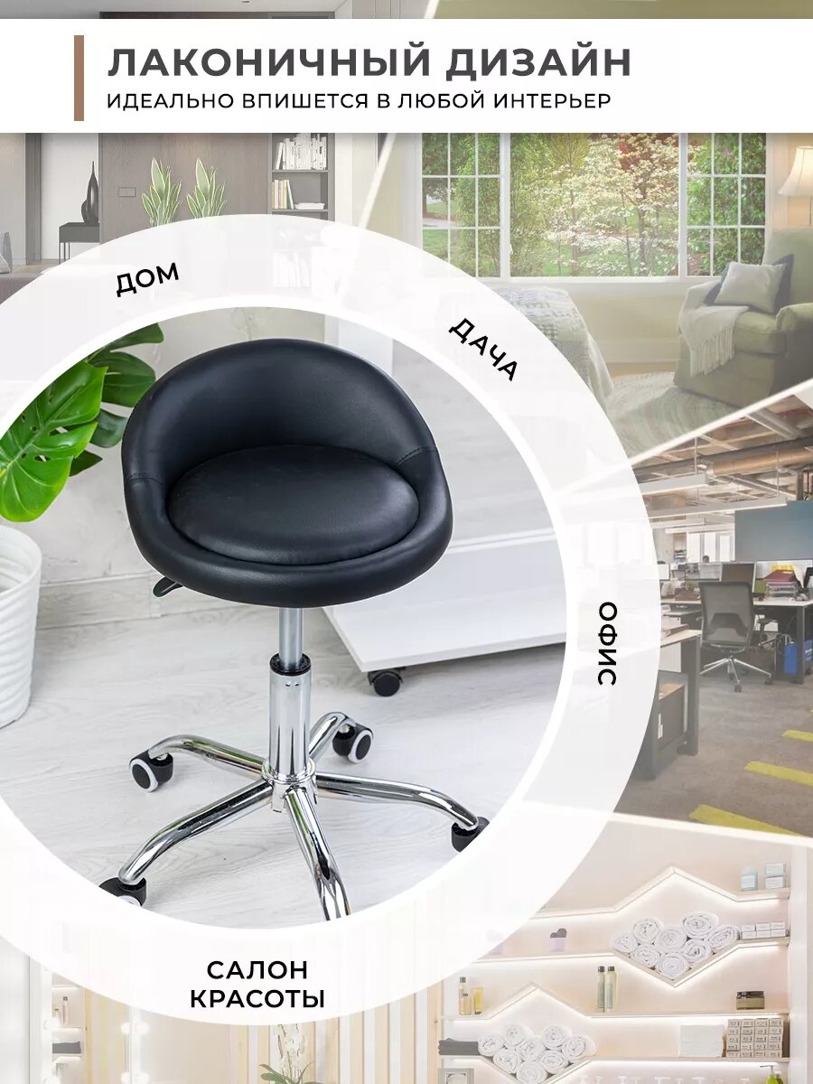 Стул мастера GL-BR-004 мягкий, набор 5 шт, на колесиках, с низкой спинкой, цвет черный
