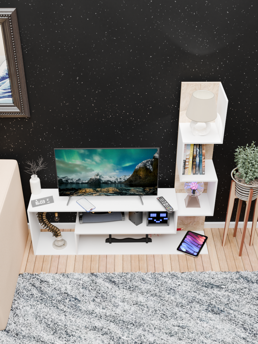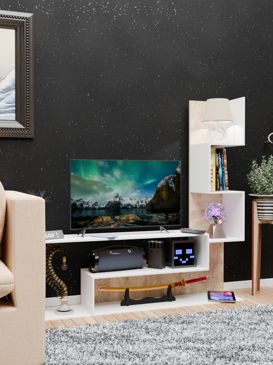 Купить Тумба для телевизора от производителя Мебель от Прудникова, 109х110х25 см, дуб сонома белый