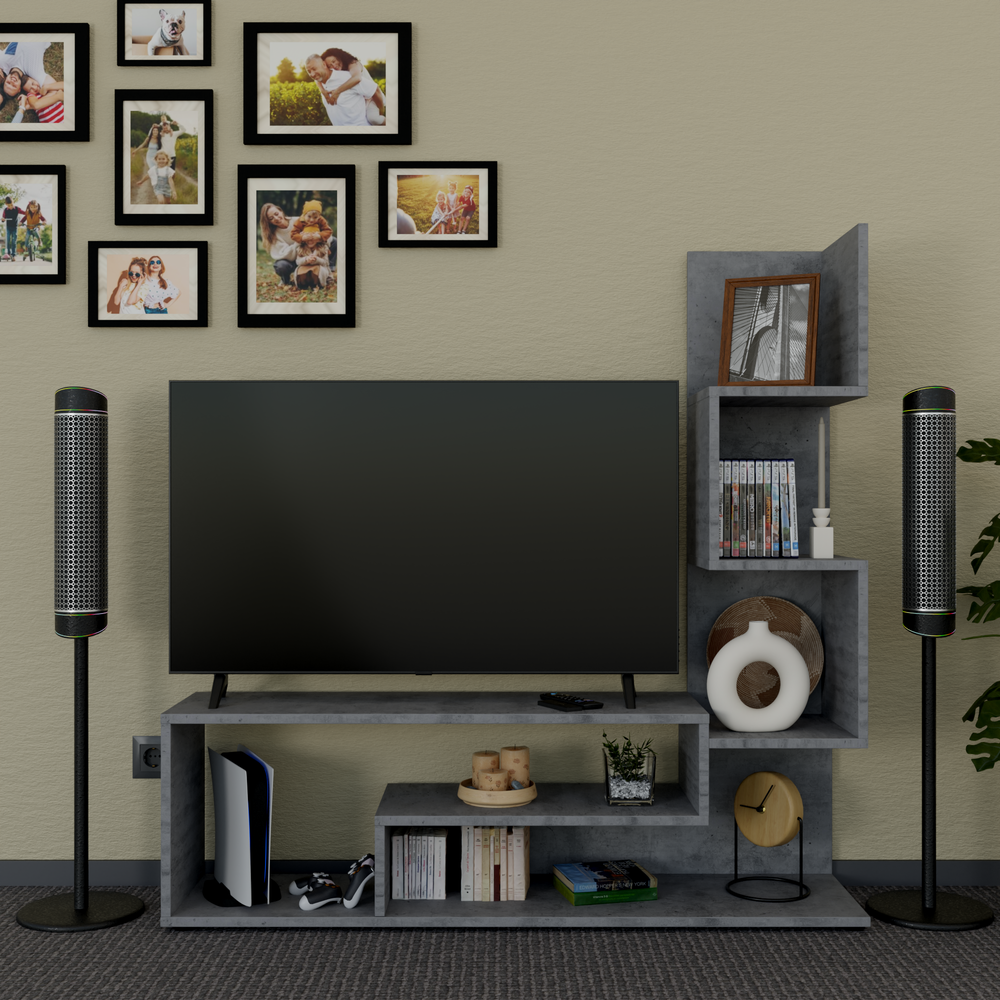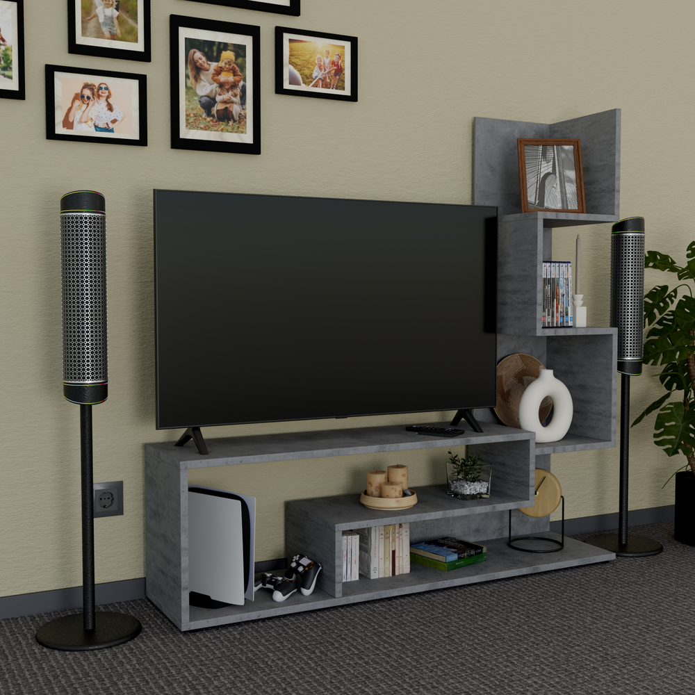 СохранитьТумба для телевизора напольная длинная с полкам от Прудникова 110х25х109 цвета серого оксид интересное: