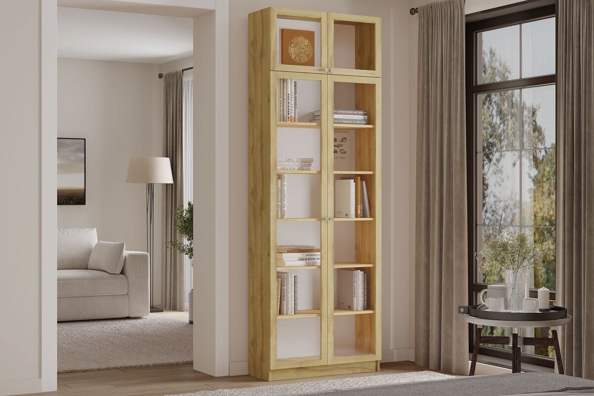 Библиотека МебельЛэнд24 Билли с антресолью - 20 Дуб Крафт белый 80x30x237 для книг четырехдверная