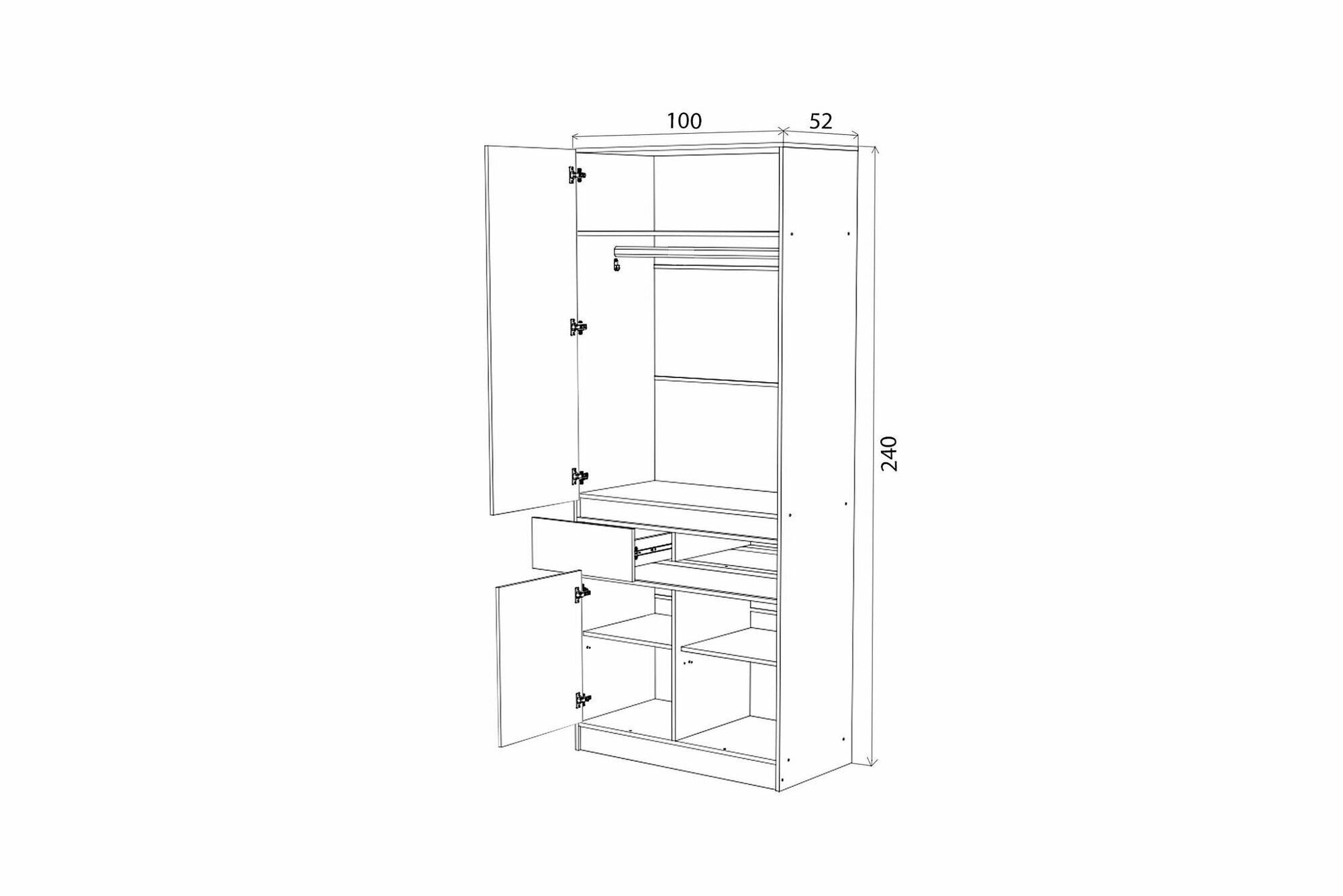 Шкаф распашной МИФ Роджина 100*240*52 двухдверный , дуб крафт/белый глянец, ЛДСП