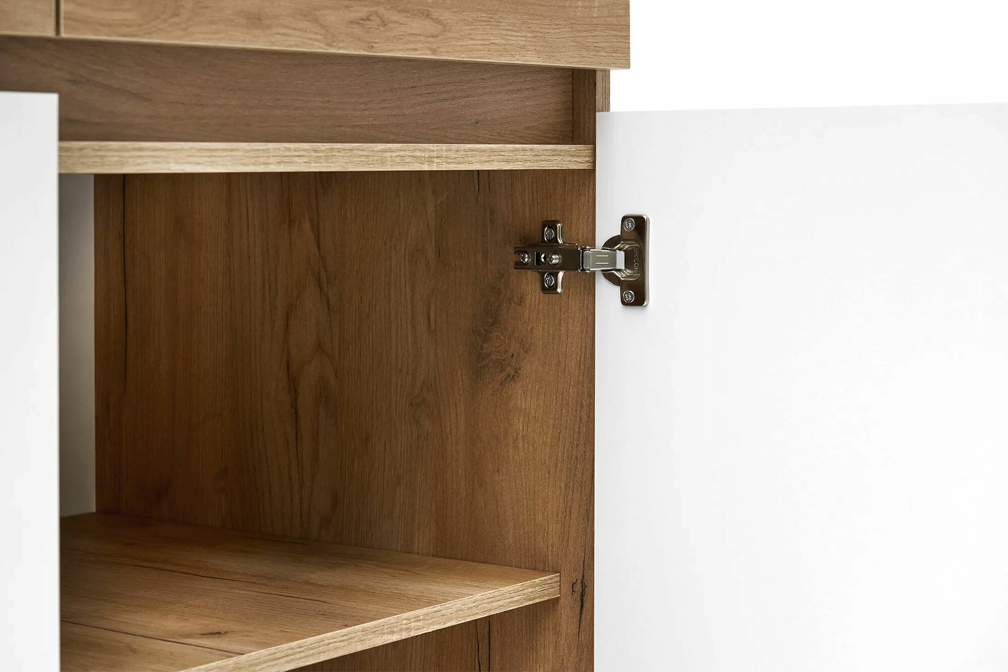 Шкаф для одежды с ящиками Нонтон Роджина, дуб крафт / белый глянец, 199 см