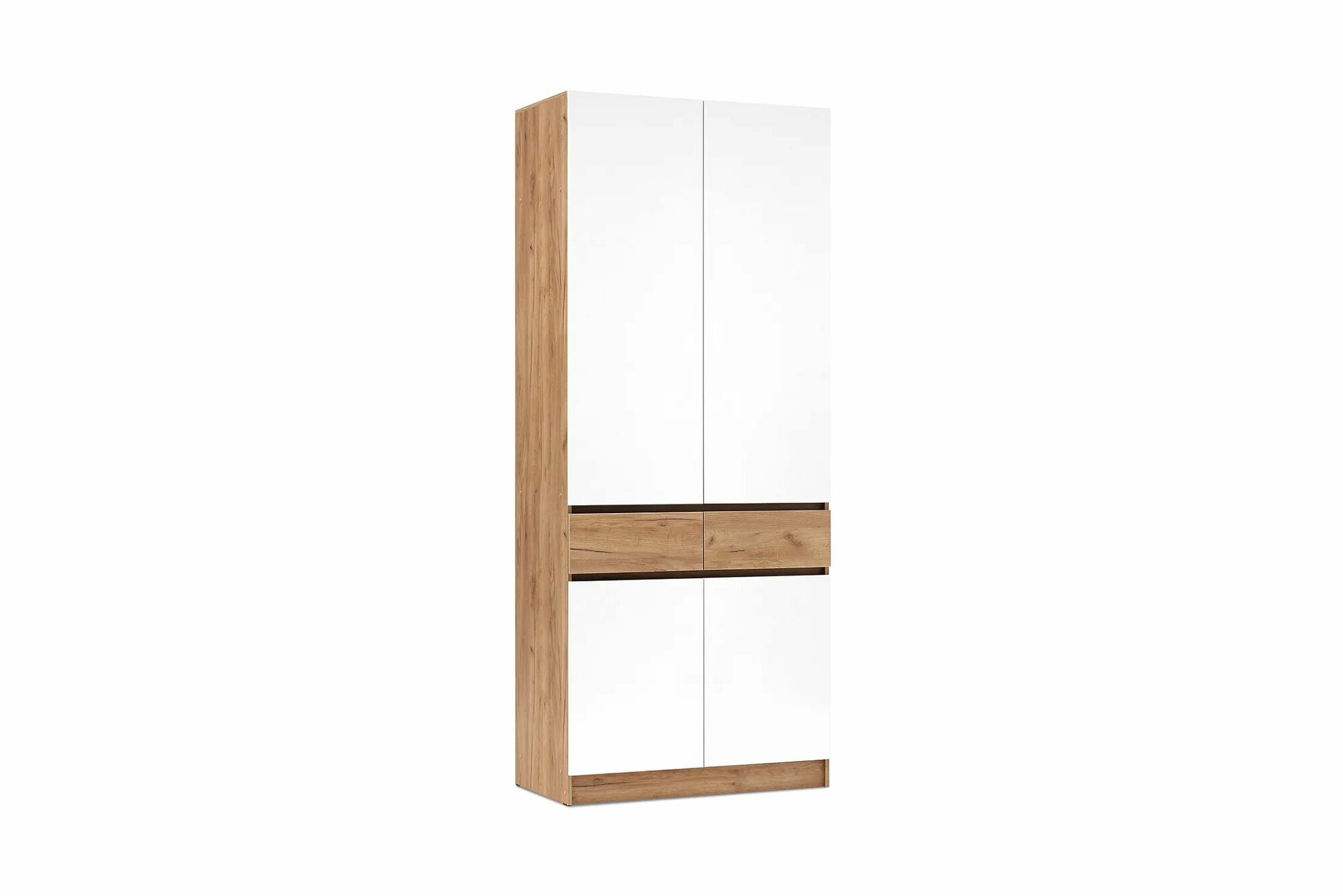 Шкаф для одежды Роджина 2х створчатый, дуб крафт/белый глянец, 240x100x52см, 4 двери, 2 ящика