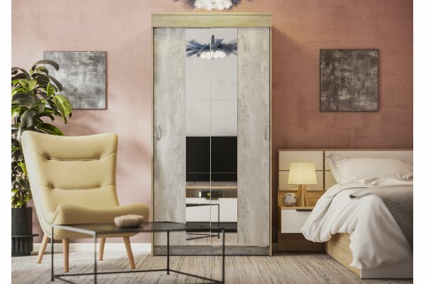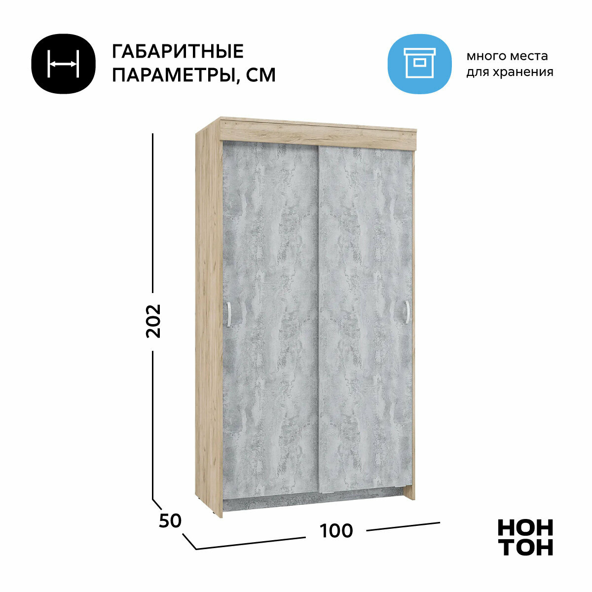 Шкаф-купе для одежды Нонтон Бассо, дуб крафт серый / бетонный камень 100 см интересное: