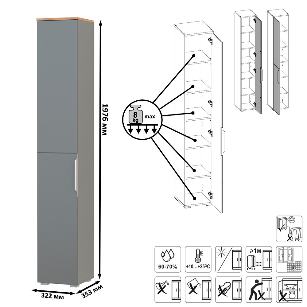 Шкаф-пенал Моби Октава 13.228 серый графит / дуб крафт золотой 32.2x35.3x197.6 см