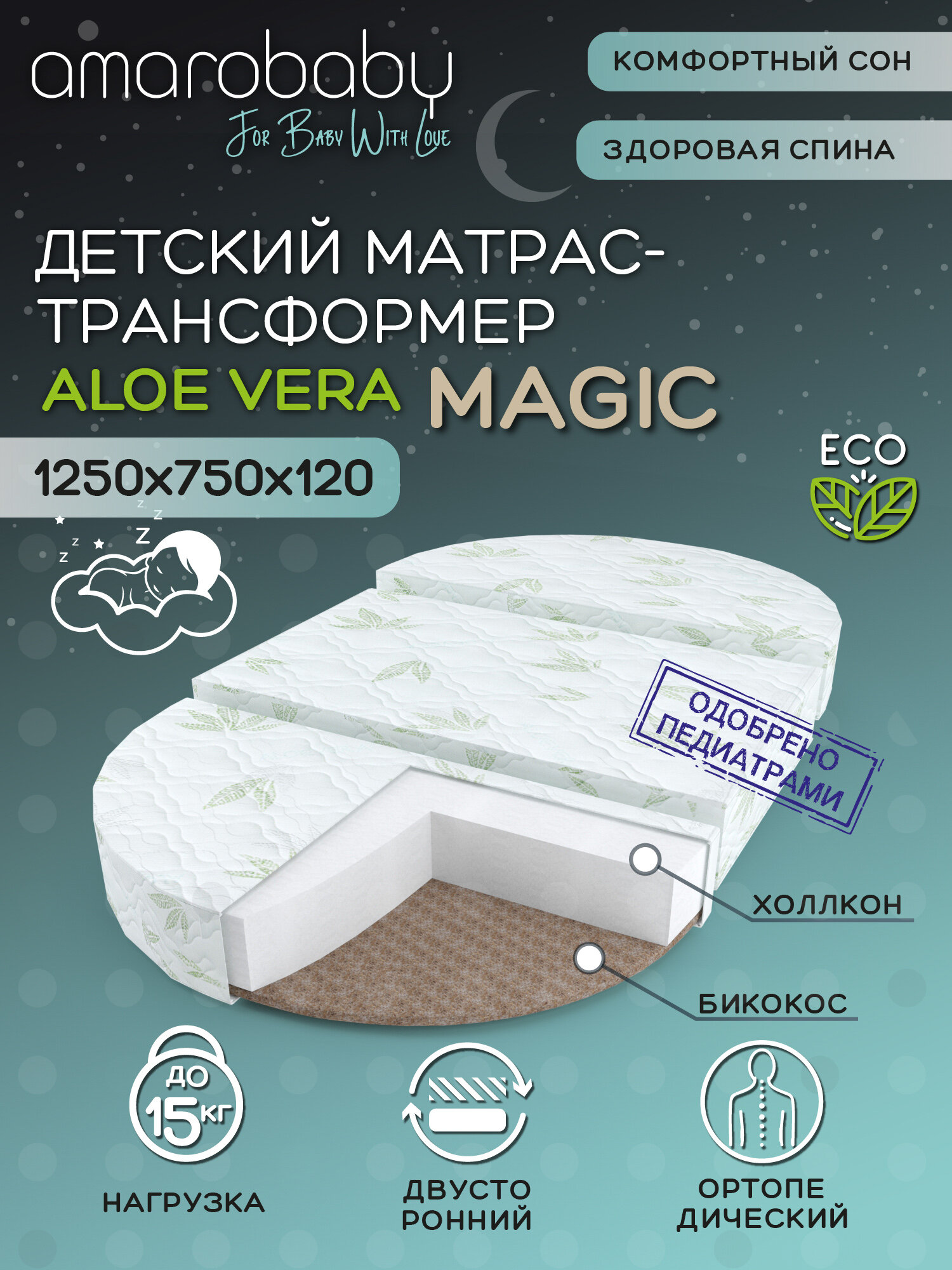 Матрас трансформер Amarobaby Aloe Vera Magic (овальный/круглый) 1250х750х120 AMARO-331275-AVME интересное:
